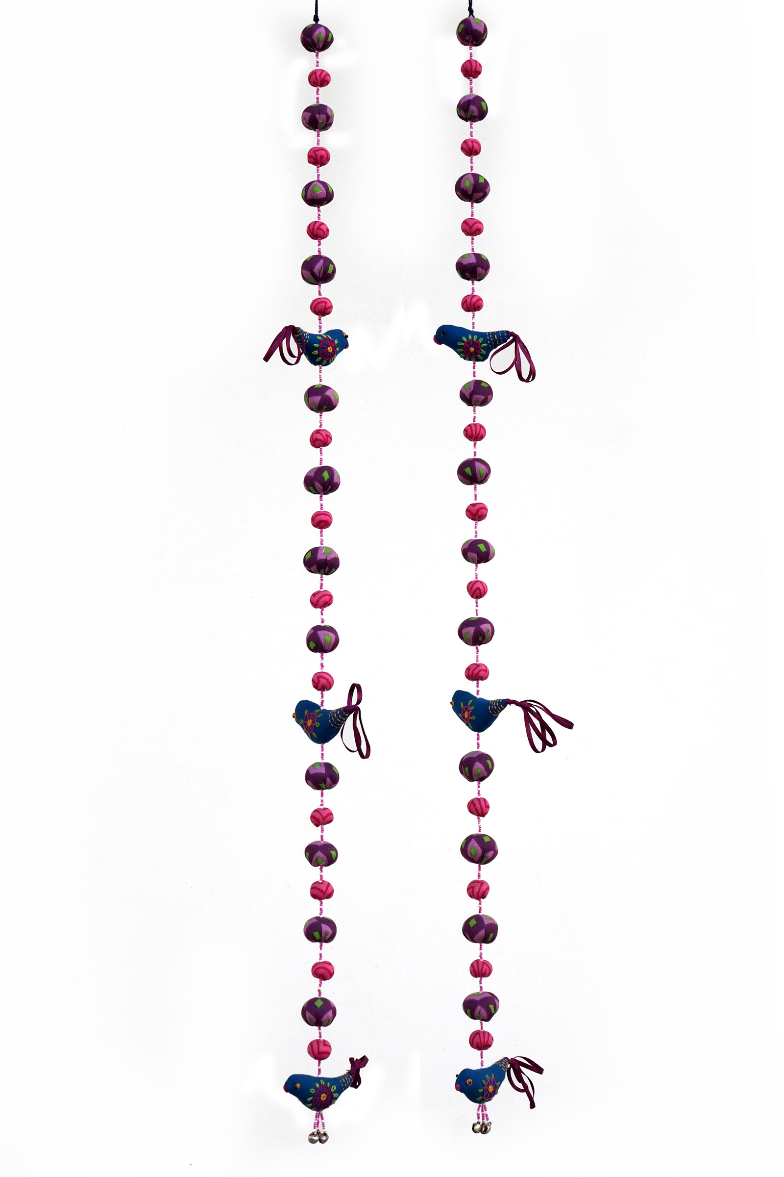Crafted from pure cotton fabric, these danglers are adorned with meticulously block-printed designs. The elephants are handstitched with attention to detail and filled with eco-friendly polyester waste, reflecting sustainable practices. Interspersed with elegant glass beads, this set showcases a harmonious blend of craftsmanship and aesthetic appeal.