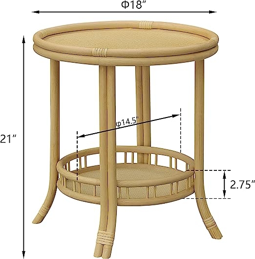 - 【Dimensions】The rattan wicker side coffee table size: 18"Dia x 21"H, load capacity: 44lbs. This is not only a decorative end table for living room, bookstore, office, but also a practical table for chatting and gaming between friends or family. Enjoy harmonious time!