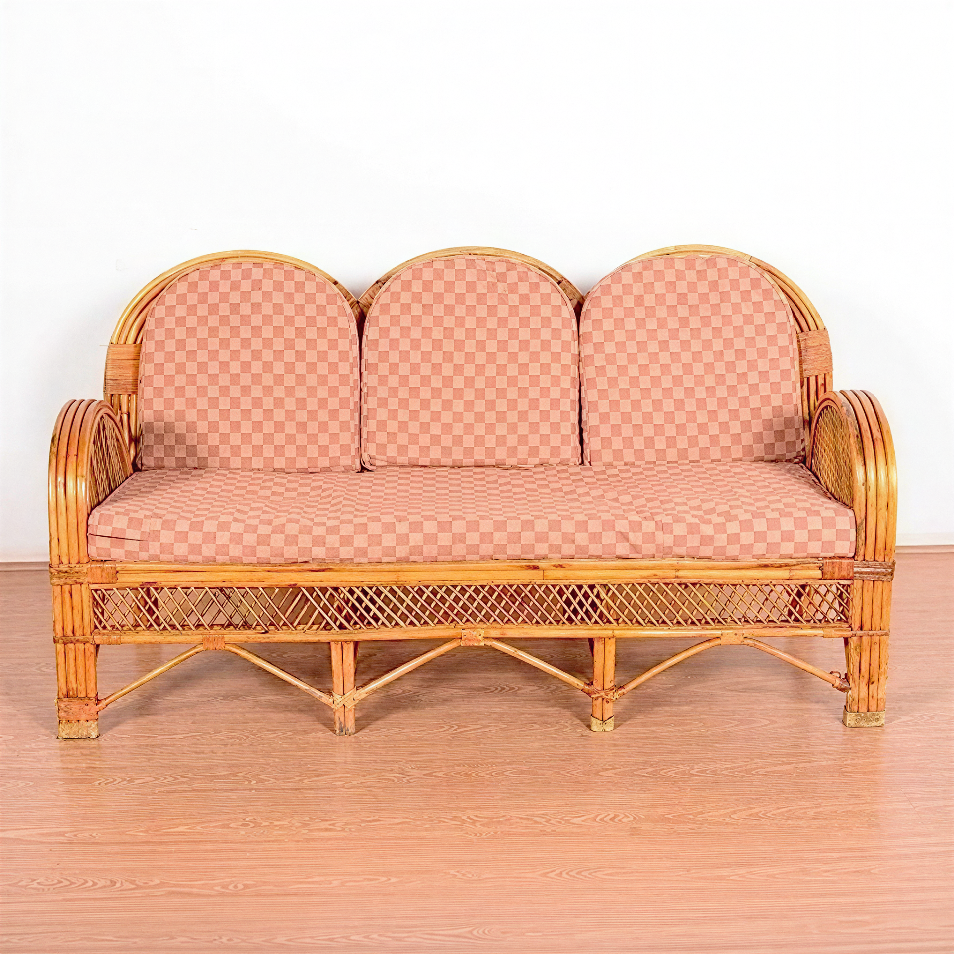 Cane Design Sofa Set with Cushion | Brown | 3-Seater