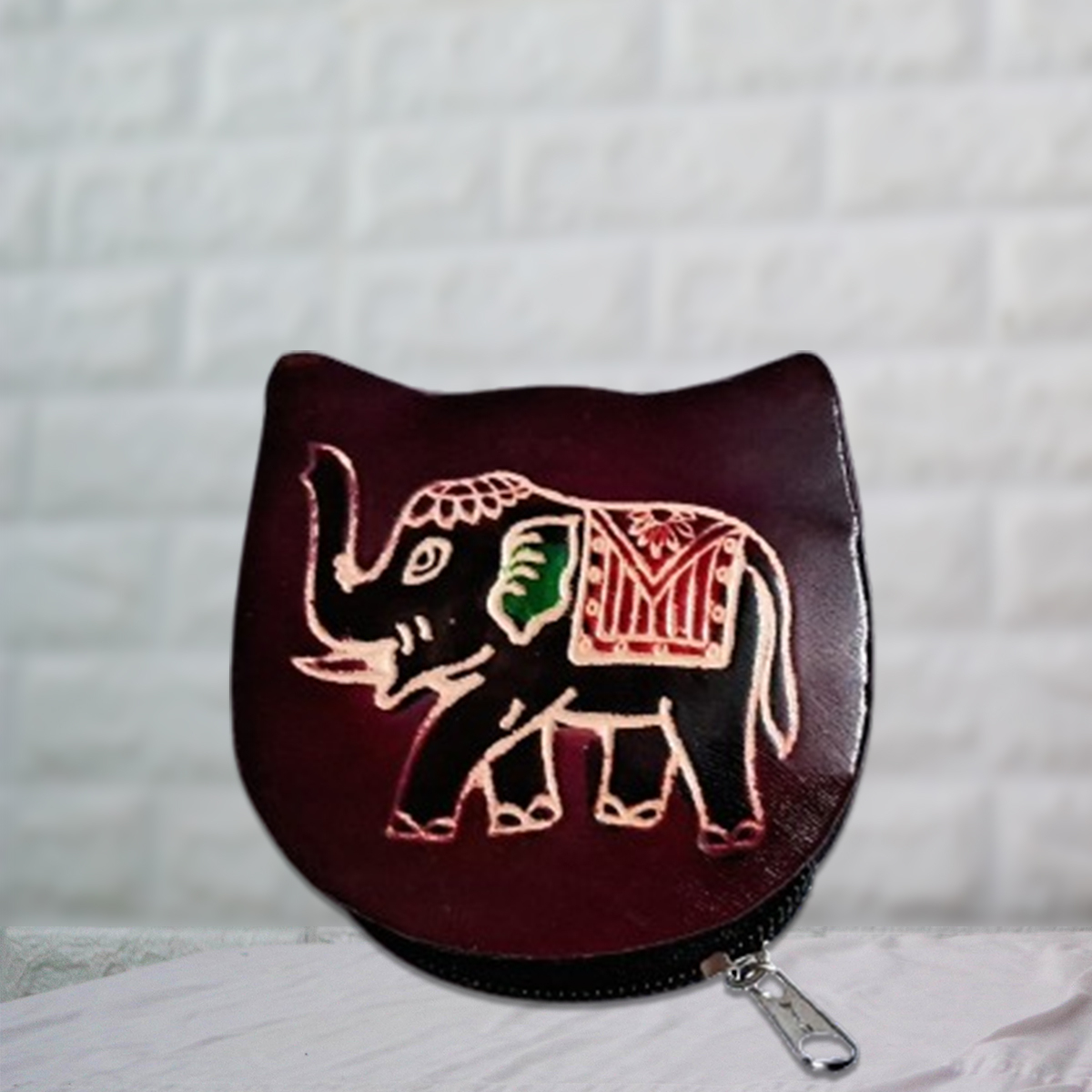 Genuine leather Small Coin Purse | Elephant Design | Maroon