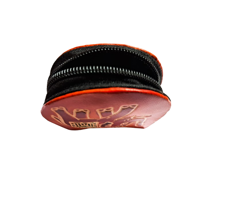 Crafted from 100% pure Shantiniketan leather, this handicraft coin purse stands out with its striking red hue and intricate elephant design. The traditional embossing process highlights the beauty of West Bengal’s cultural artistry. The burnishing technique enhances the rich red colour, adding an elegant sheen to the leather. Featuring one zipper pocket, this purse is designed to be both functional and fashionable, perfect for your coins and small valuables.