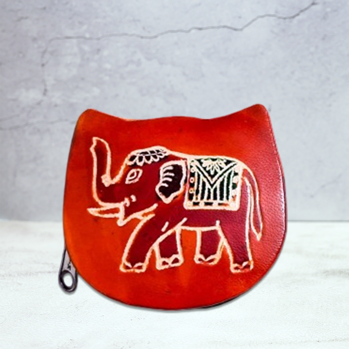 Genuine leather Small Coin Purse | Elephant Design | Red