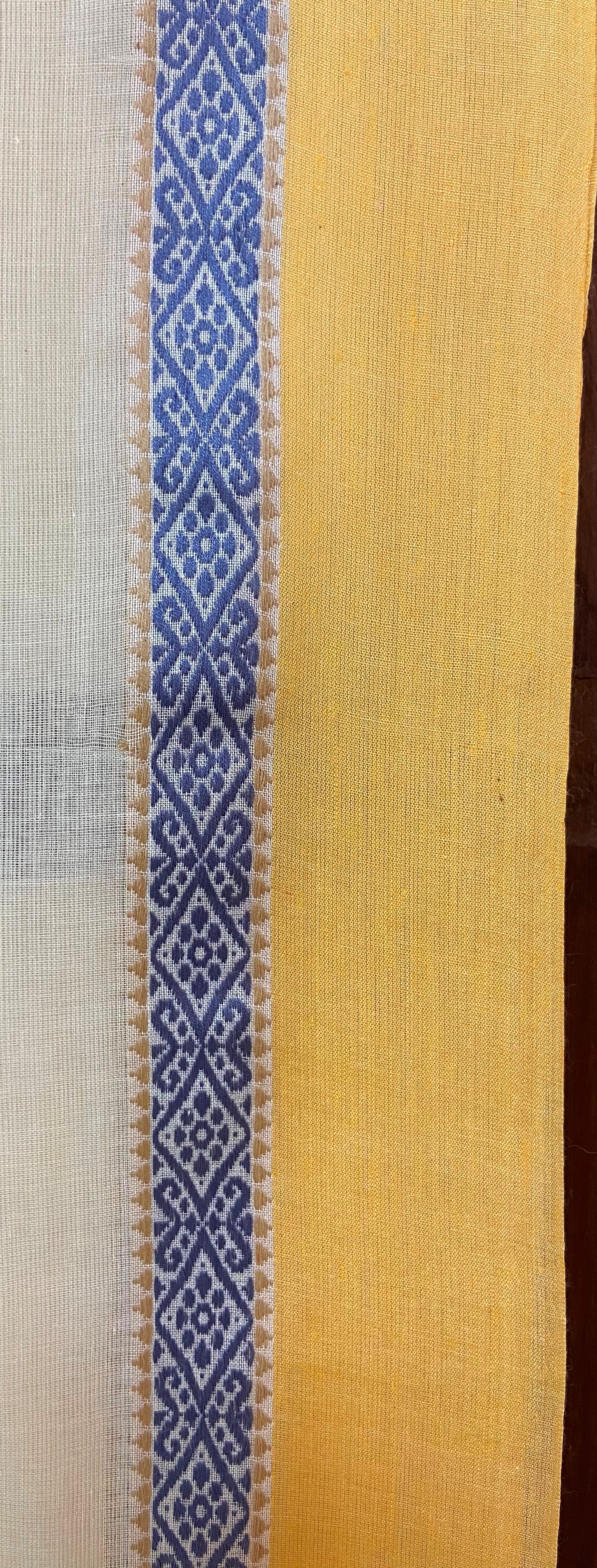 The town of Shantipur became a prominent weaving centre as early as the 15th century, eventually gaining royal patronage that elevated the craft to an art form. The hallmark of a true Santipuri saree lies in its fine and uniform texture, achieved through the use of high-quality cotton yarn ranging from 80s to 100s counts. What truly distinguishes this craft is the intricate extra-warp technique used to create the side borders. Local weavers draw inspiration from their surroundings, translating everyday objects and nature into geometric patterns that have remained virtually unchanged for generations.