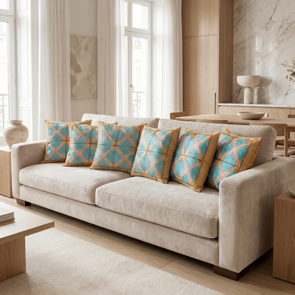 Hand-Embroidered Cream Cushion Covers | Set of 6