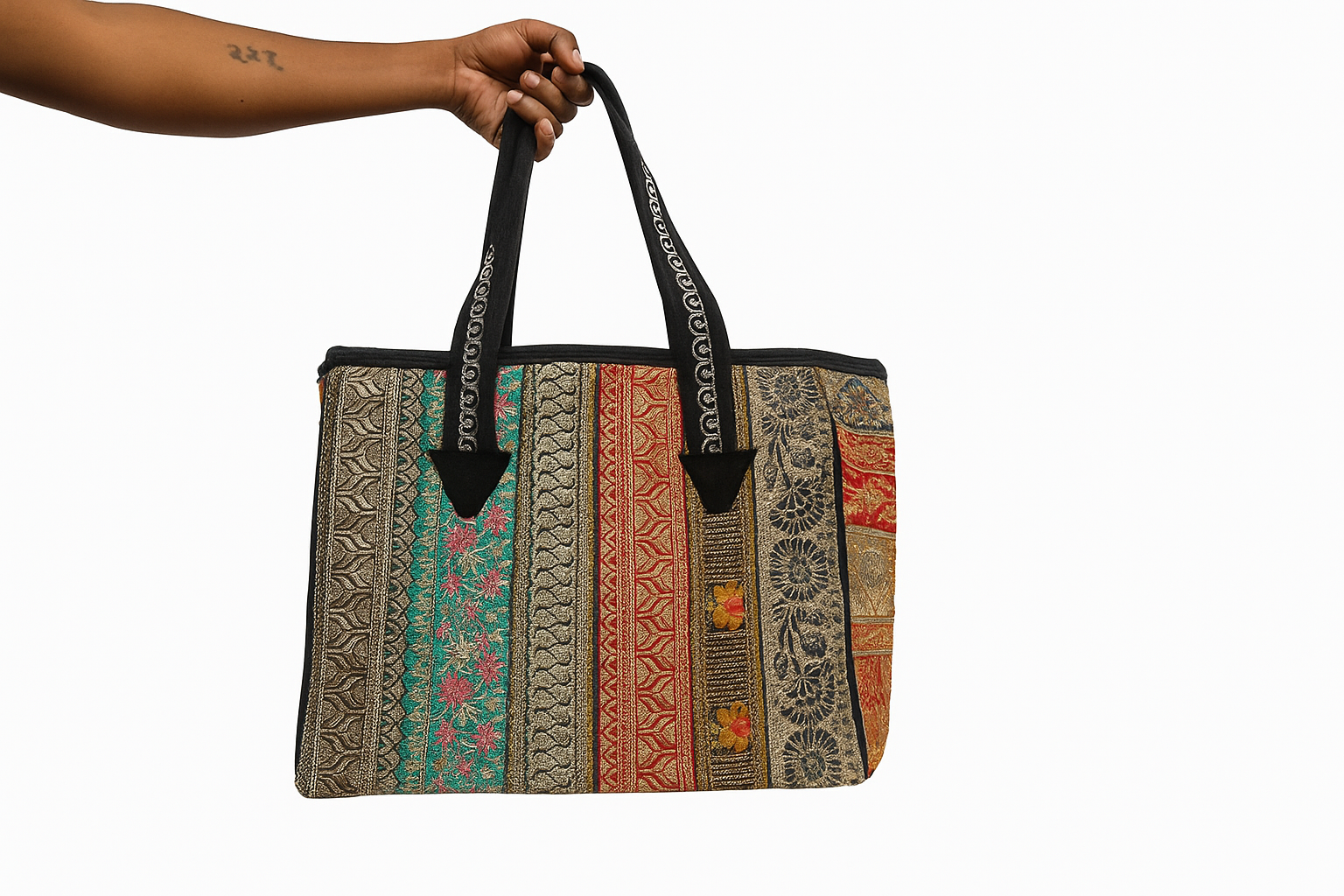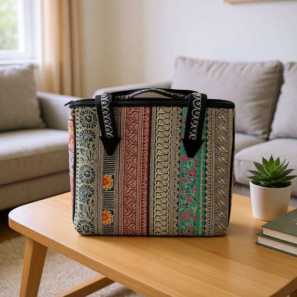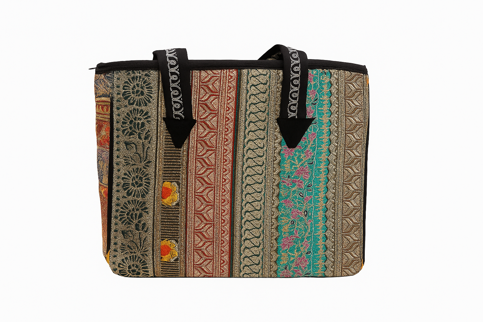 Handcrafted Gujarati Embroidered Tote Bag for Women – Traditional Ethnic Shoulder Bag