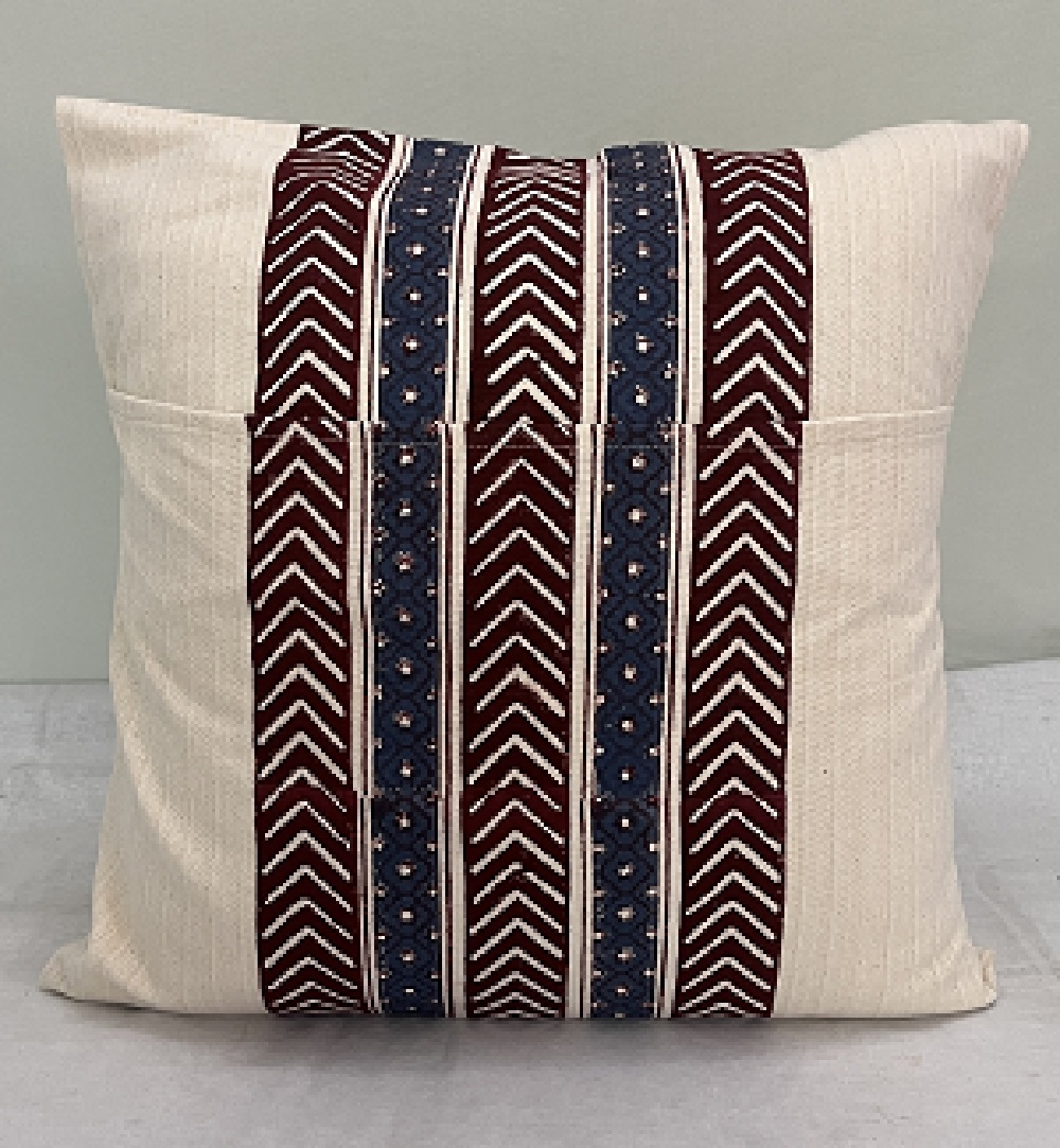 Add some color and style to your sofa, bed, or chair with the beautiful cushion cover, made of high-quality cotton. Add a touch of elegance to your living space with this handcrafted cotton cushion cover featuring a beautiful block print design. The earthy tones of maroon and blue in geometric patterns give it a traditional yet modern appeal. Made from premium quality cotton, this cushion cover is soft, durable, and perfect for sofas, chairs, and beds.