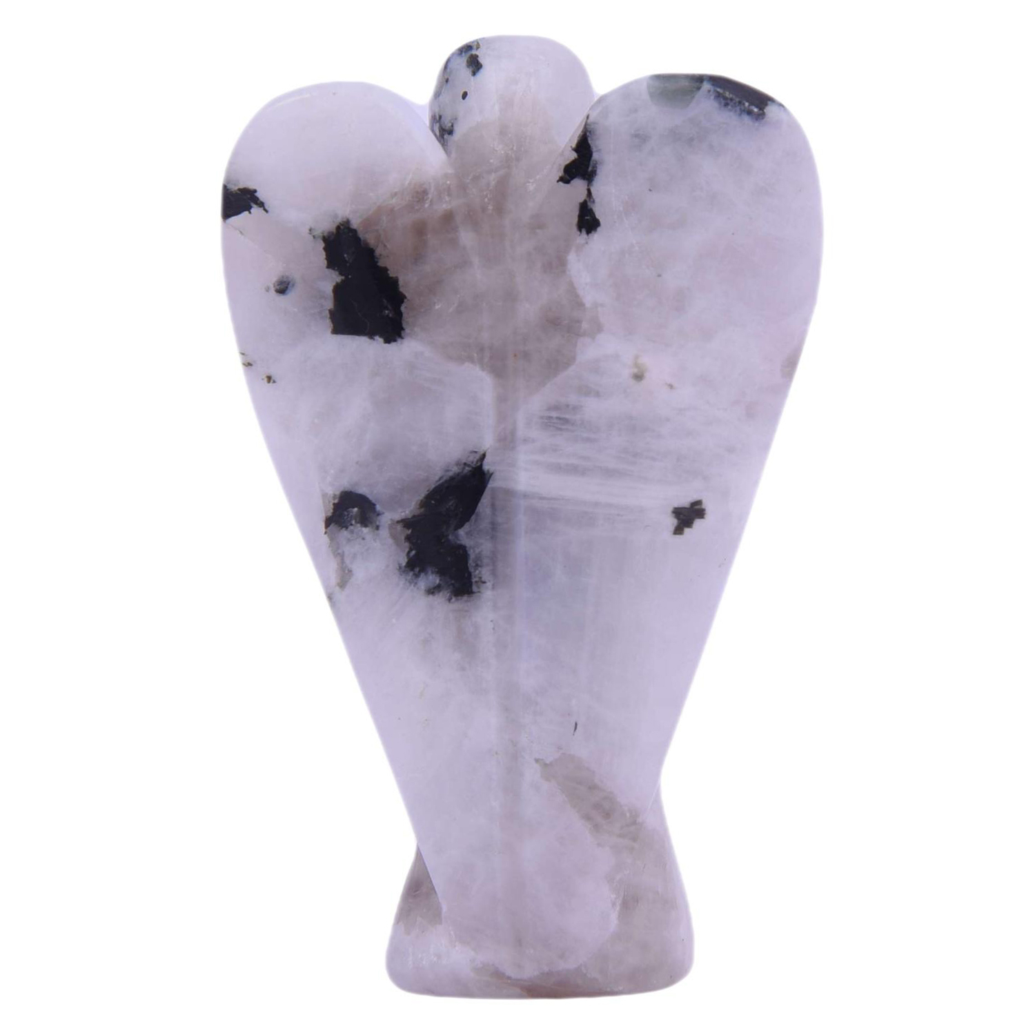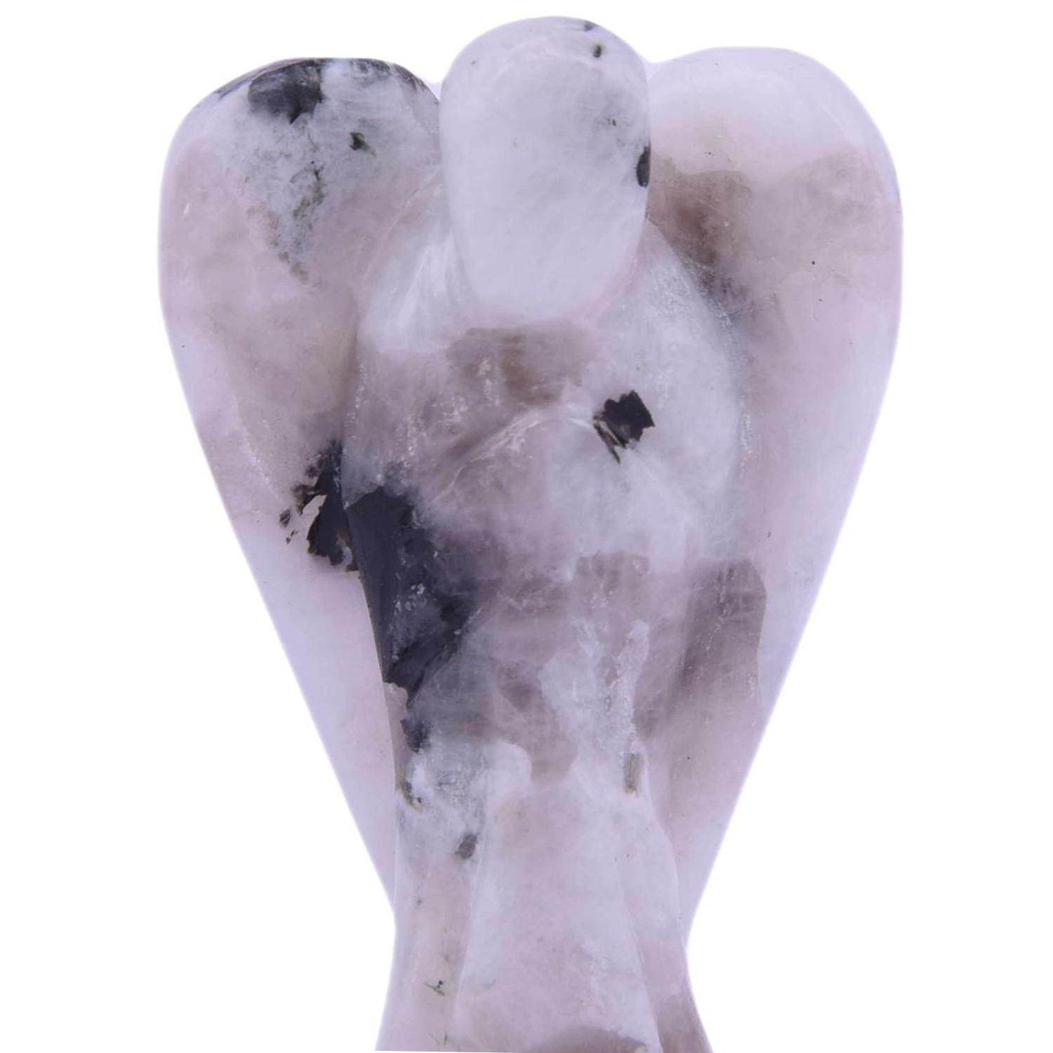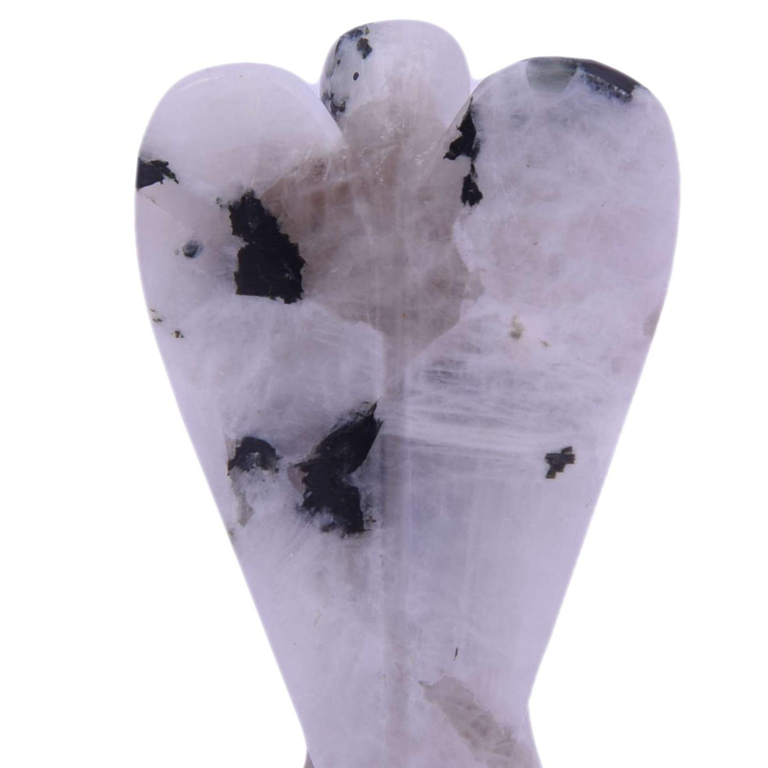 | Rainbow Moonstone Angel Handcarved Statues Figurines Stone of Good Luck Reiki Healing Crystal for Physical, Emotional & Spiritual Imbalance, Positive Vibes Energy |
