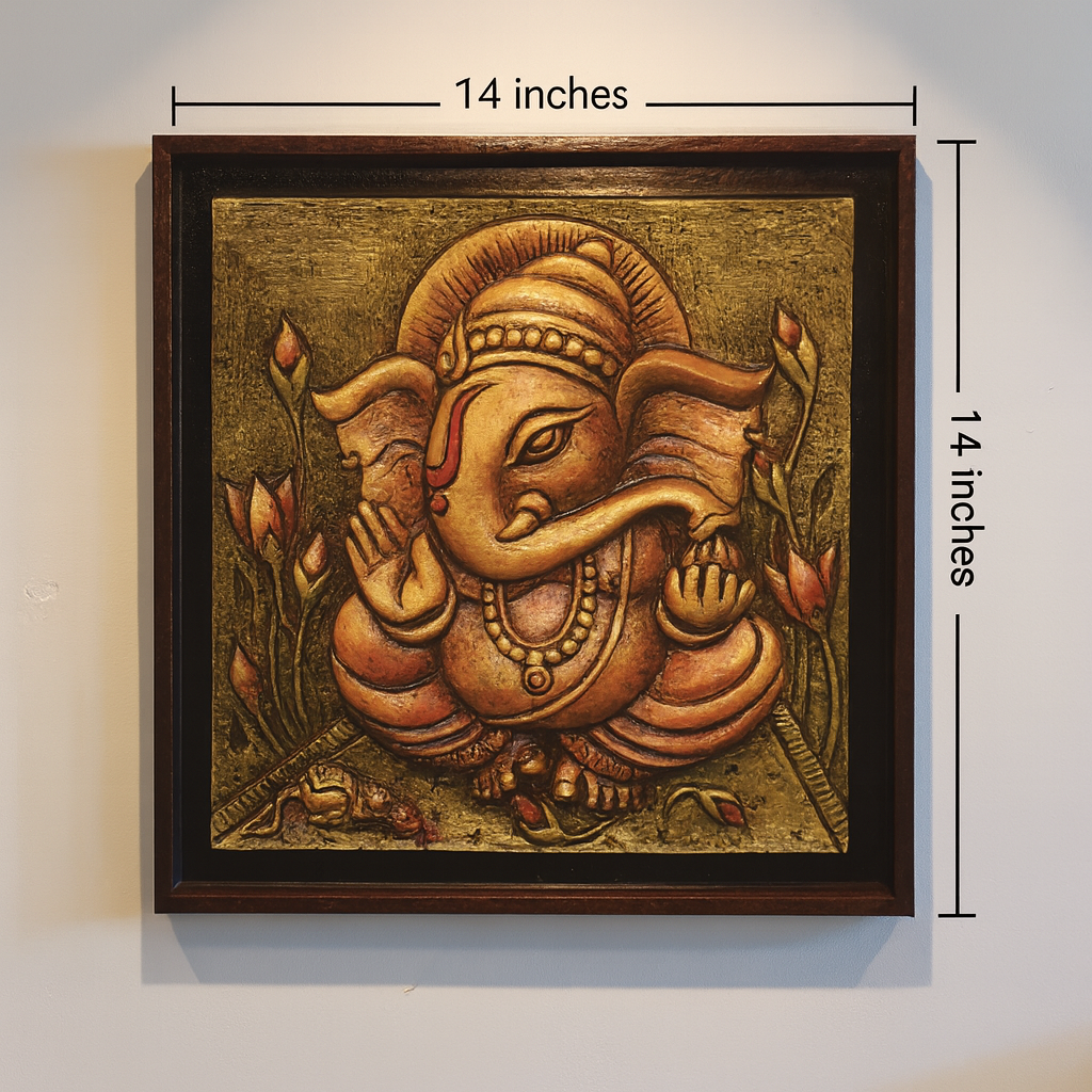 Handcrafted Artwork of Ganesha with Flowers | 14x14 Inches
