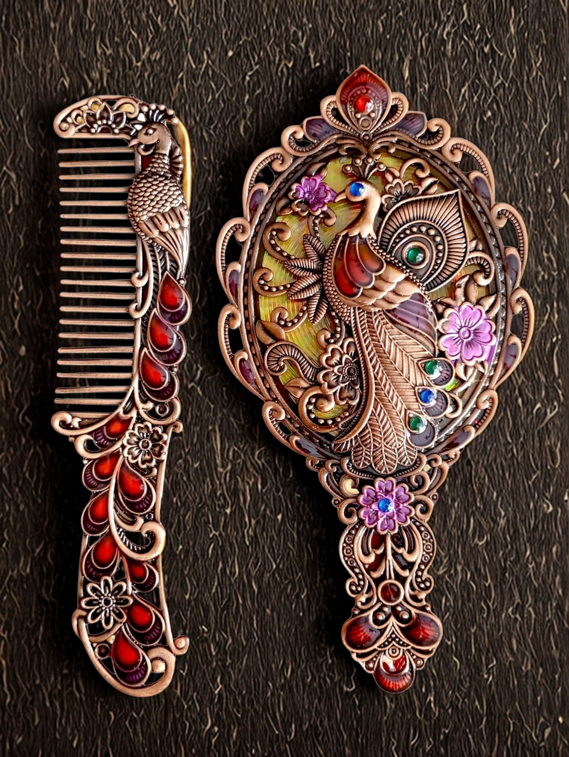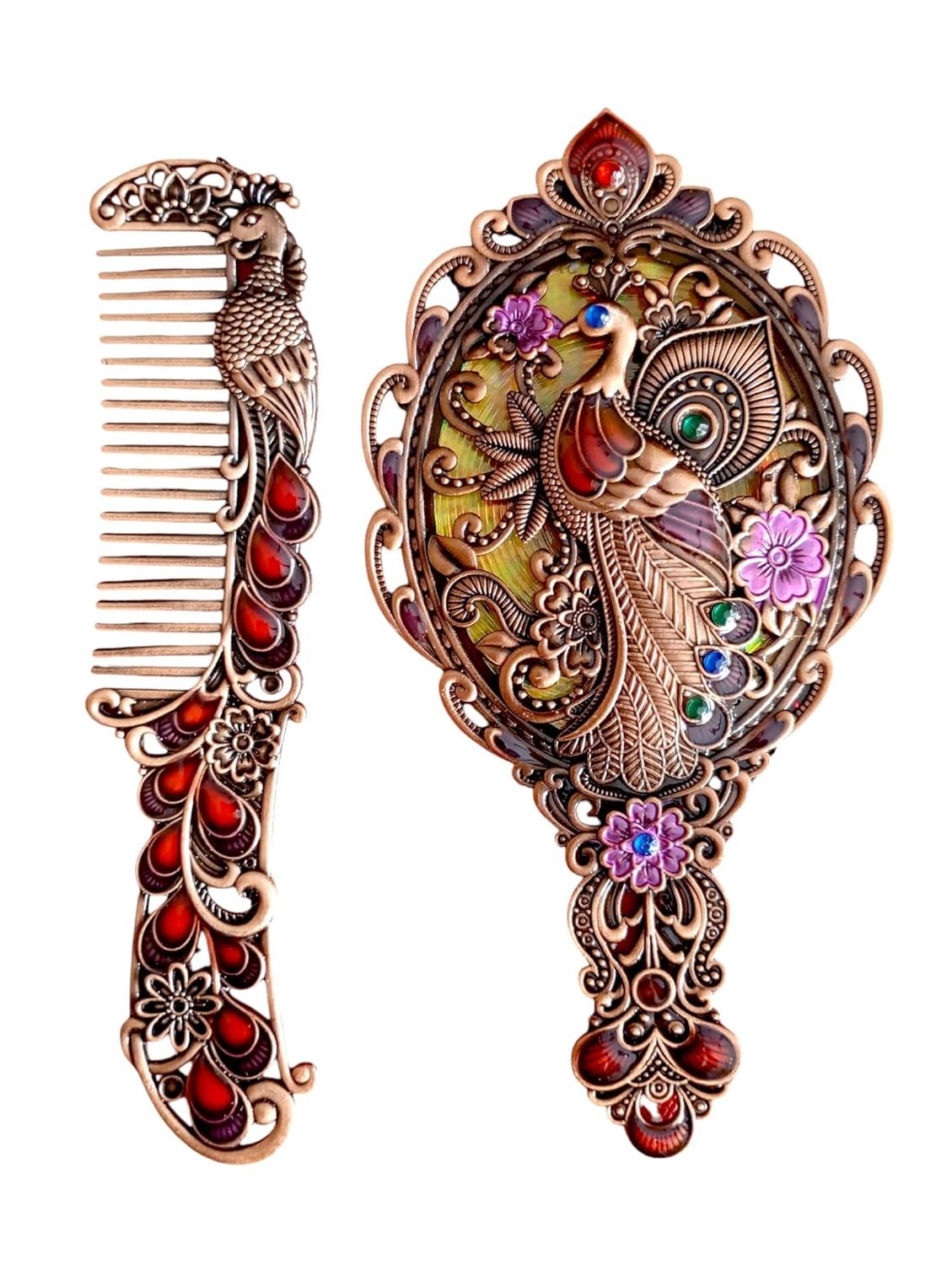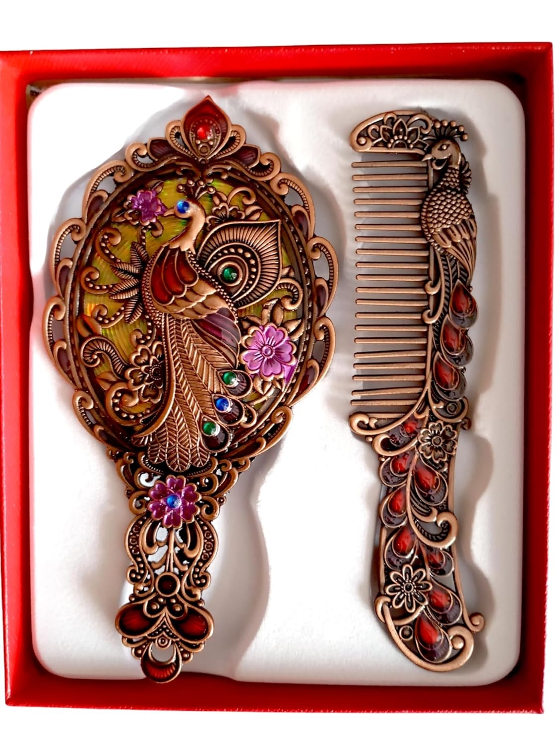 - The Shape, Size and Design of the Metal Mirror and Comb Will be the Same as shown in the image but The Colors can be different. The mirror color can be different because it is a completely handmade handicraft product and it has very high demand and low supplies. Please Check Before Placing your Order.