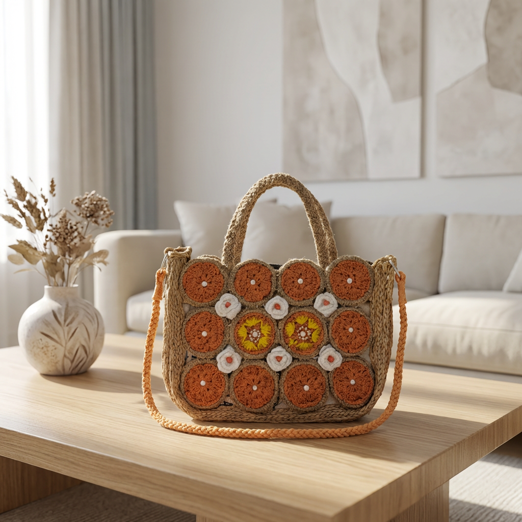 Handcrafted Natural Beige Jute Purse | 25 x 6 x 22 Inches