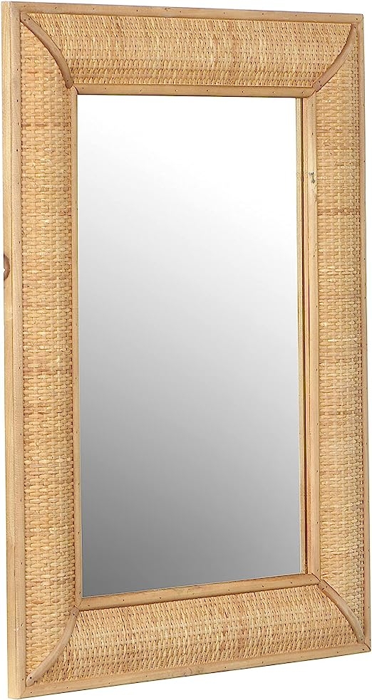 This handcrafted rattan rectangle wall mirror offers a blend of natural materials and contemporary design. Its versatility and unique aesthetic make it a superb choice for adding character to your living space.