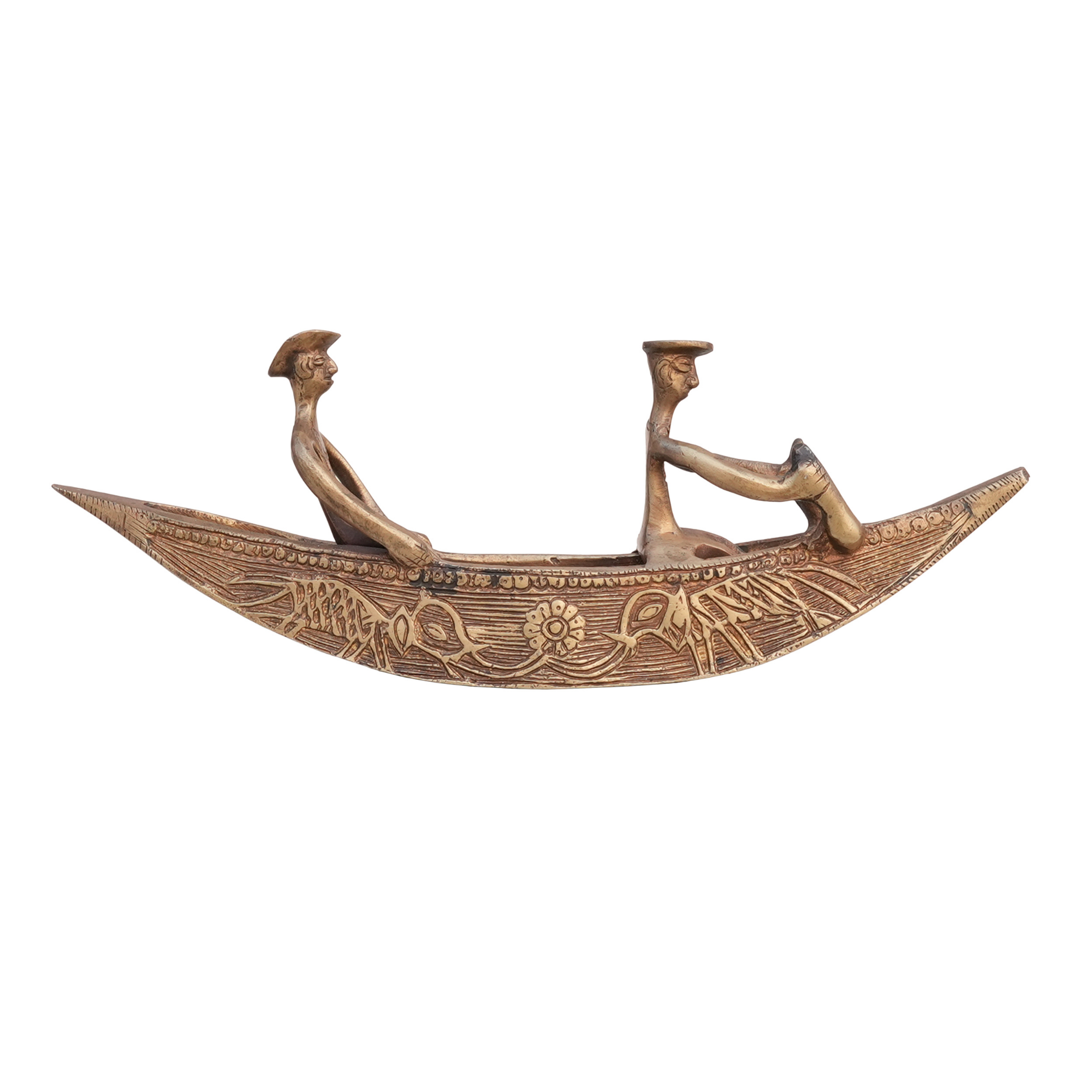 The true speciality of this brass boat lies in its narrative power. It serves as a striking centrepiece that instantly elevates a room's aesthetic, seamlessly blending rustic charm with sophisticated design. The delicate figures seated within the vessel, along with the detailed motifs along the hull, evoke a sense of journey and community. Whether placed in your living room, on an office desk or in a display cabinet, it acts as a conversation starter, a silent storyteller that speaks volumes about global artistry and the preservation of traditional skills. It is an enduring collectable and a thoughtful gift for anyone who appreciates culture and timeless elegance.