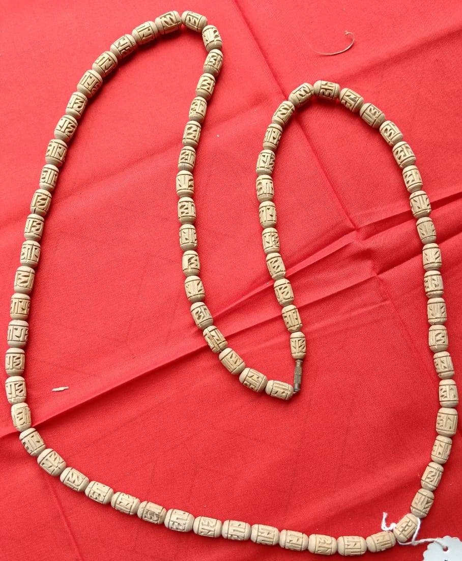 What makes this Handcrafted Tulsi Kanthi Mala so unique is its origin and raw material. It is a double-round neck Kanthi Mala, meticulously handmade from the stem and root of the Tulsi wood. No machine or mass production technique is involved. Each bead may vary slightly in size and form, a testimony to the handcrafted nature of the product and a subtle reminder of the artisan’s personal touch.