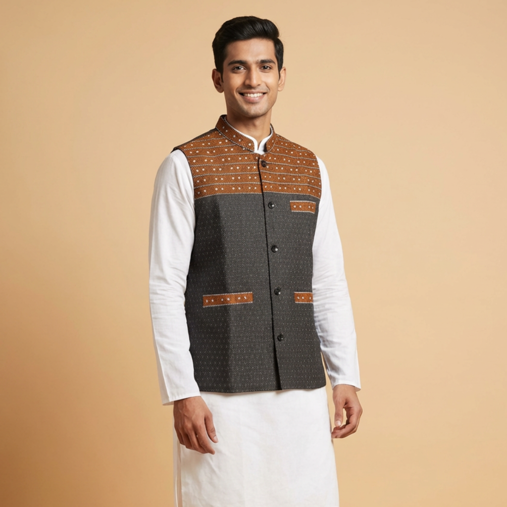 What makes this waistcoat truly special is its cultural soul. Unlike mass-produced garments, the Zikhe coat is a symbol of identity. The specific arrangement of the weave signifies the wearer’s connection to his roots. Its durability is a testament to the quality of hand-spun cotton, ensuring that the garment remains a staple in your collection for years. It serves as a bridge between the serene traditions of Arunachal Pradesh and the bustling energy of modern celebrations.