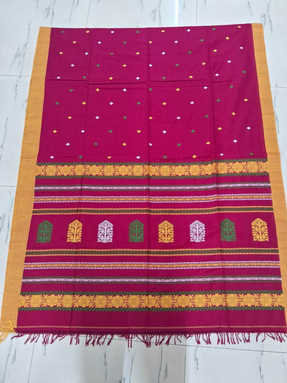 Handloom Cotton Magenta Saree with Blouse Piece