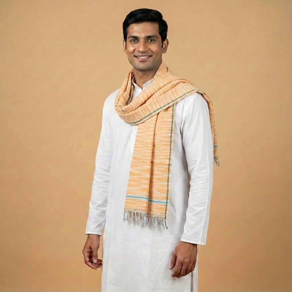 Handloom Cotton Orange Gamcha | 66 x 33 Inches
