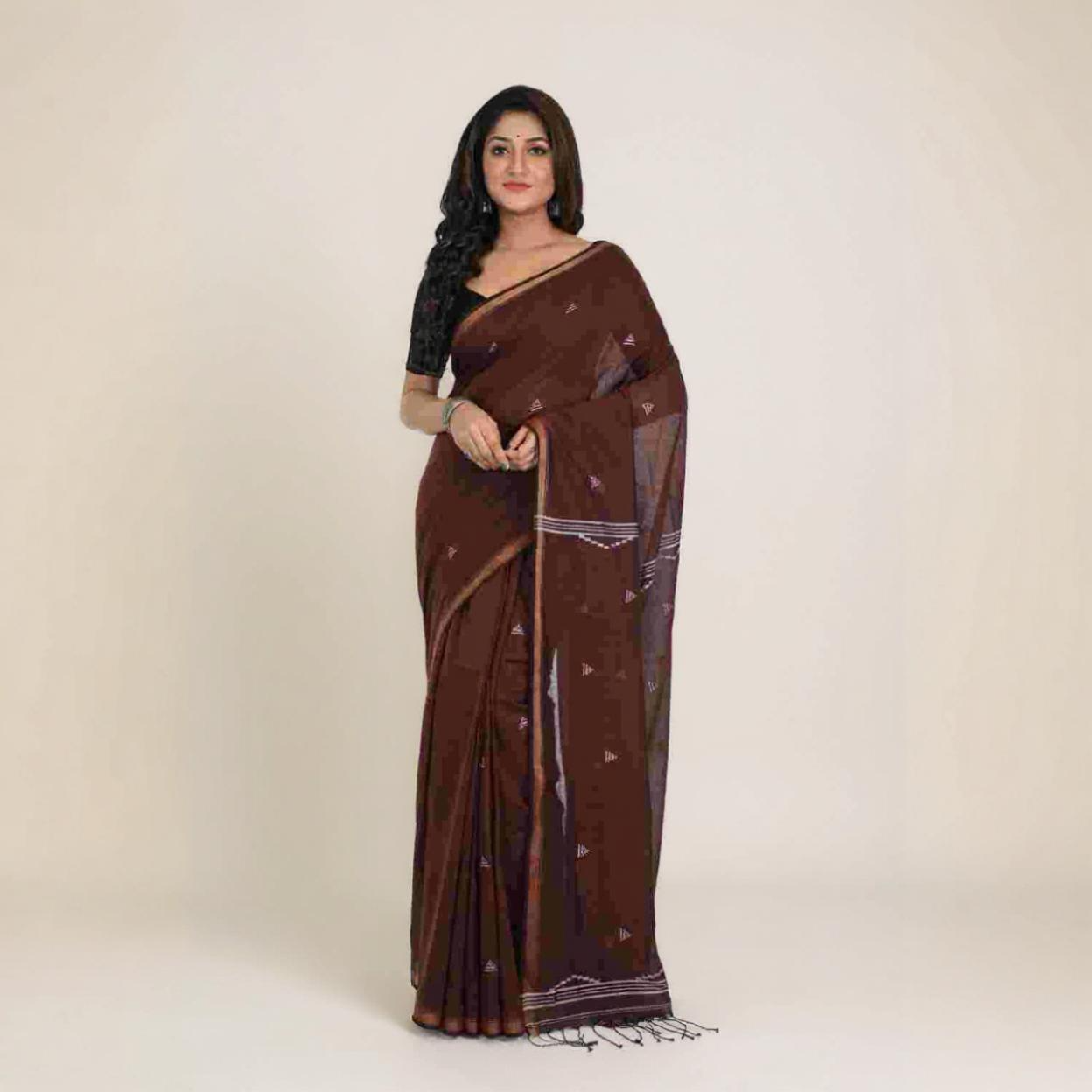 The Artisan's Whisper: Handloom Cotton Tangail Brown Saree