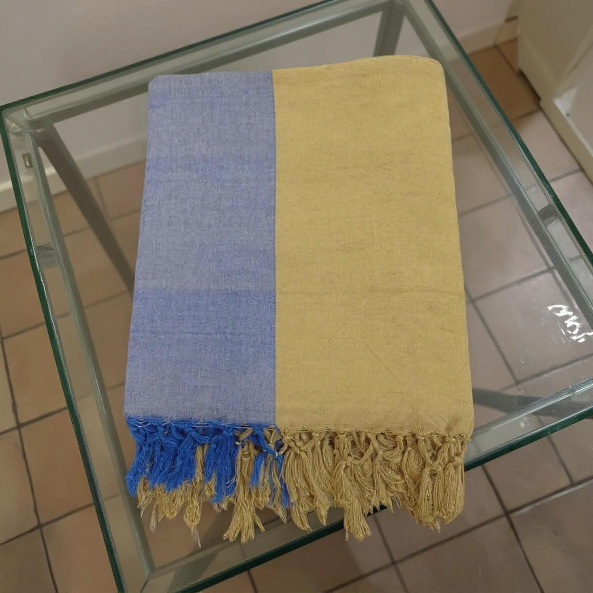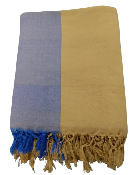 This yellow and blue handloom bedsheet is a vibrant testament to skilled craftsmanship, expertly woven by artisans with intricate detailing.