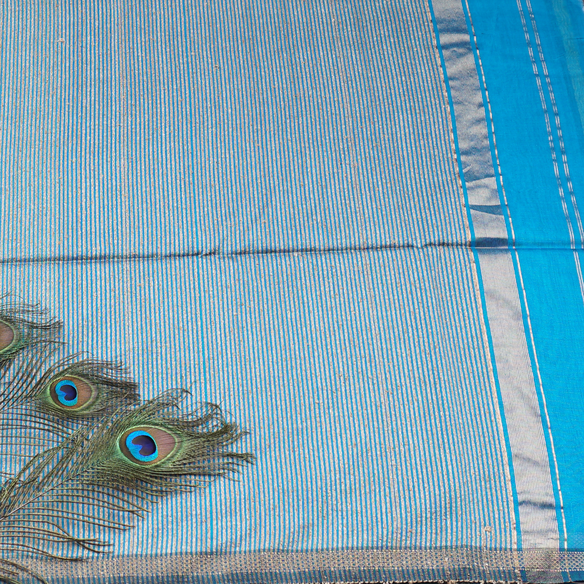 This elegant sky blue Maheshwari Kosa Padar Saree is a testament to the timeless artistry of handloom weavers from Madhya Pradesh. Woven on traditional looms, the saree brings together age-old weaving techniques and refined craftsmanship, making it a graceful addition to any wardrobe.