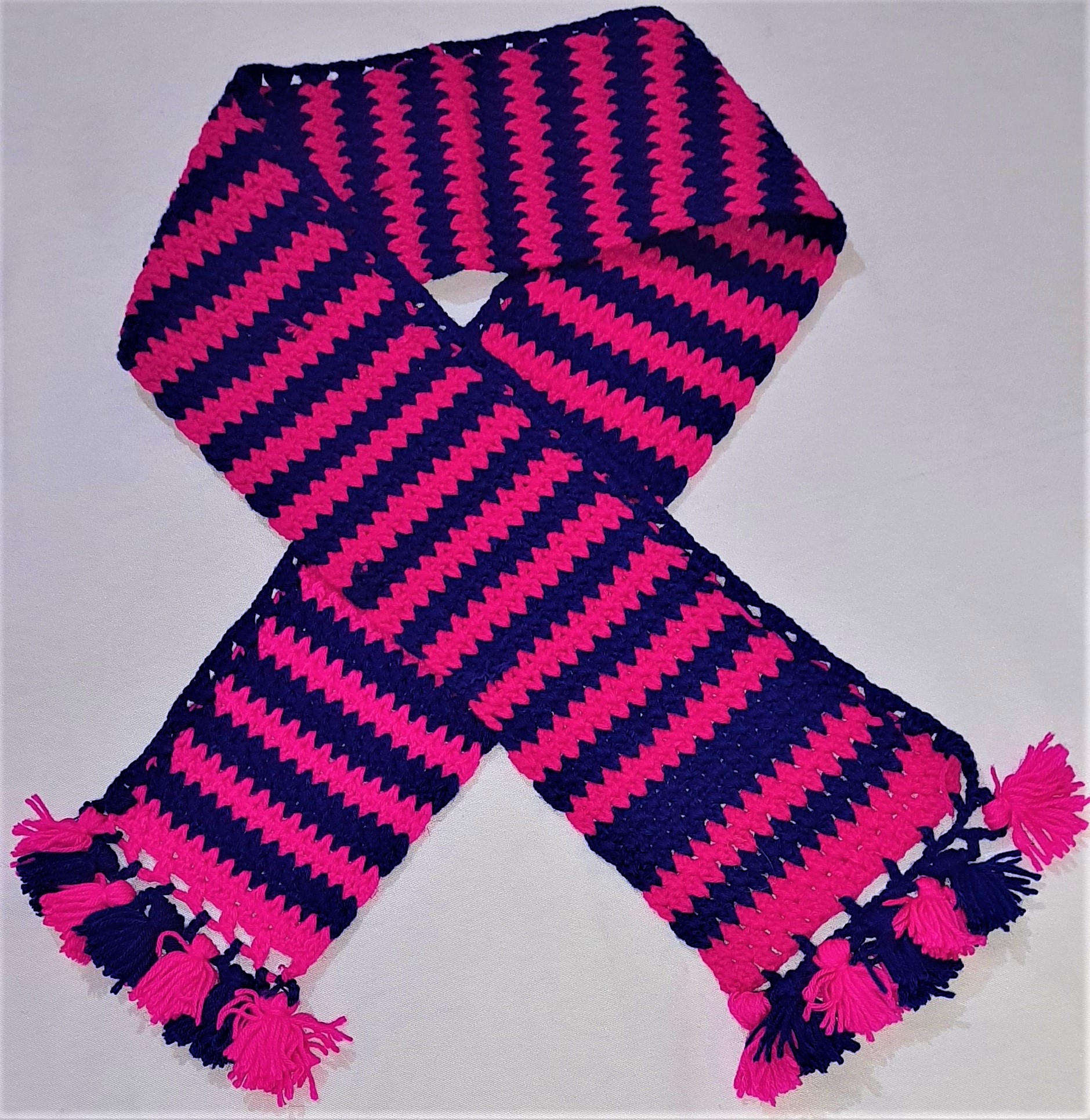 Add a dash of elegance to your winter wardrobe with this hand-crocheted pink and blue muffler. Crafted by skilled artisans of Uttar Pradesh, this woolen muffler blends traditional craftsmanship with modern design. Perfect for casual outings, it keeps you cosy while making a statement with its vibrant colours and intricate crochet pattern.