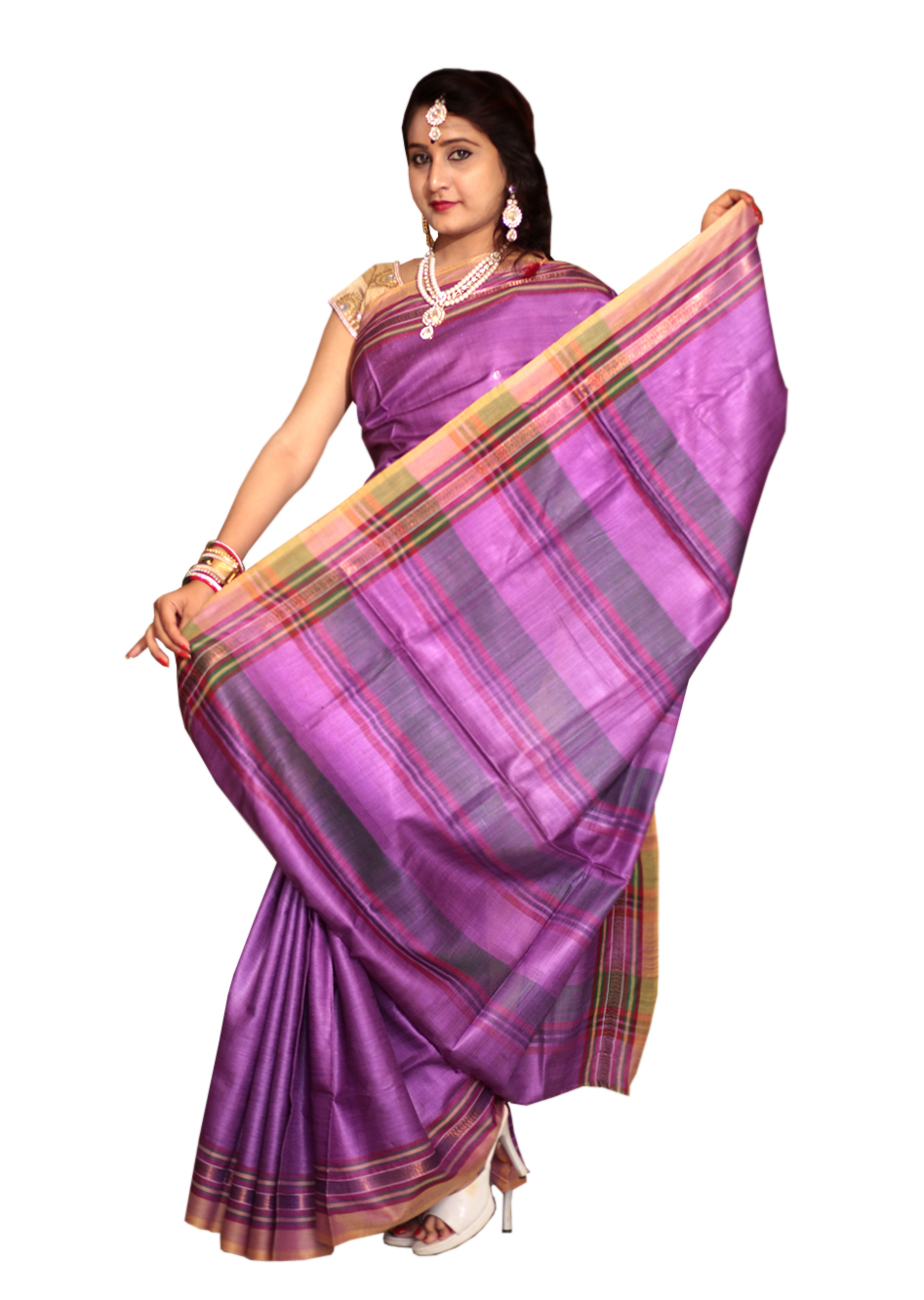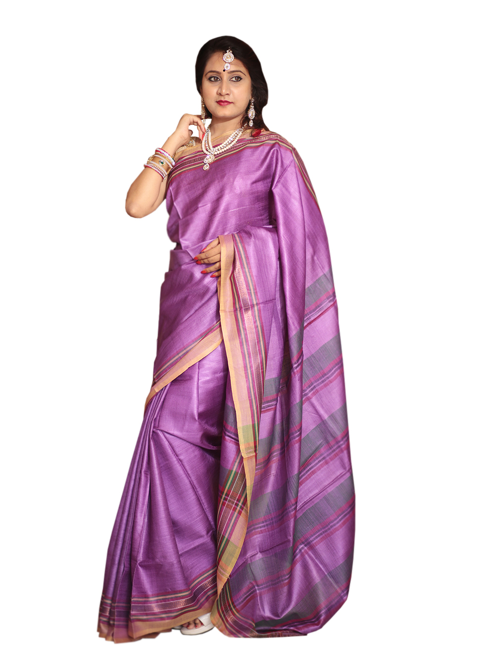 Purple tasar silk saree, pure tasar silk saree from Jharkhand, handloom silk saree India, Silk Mark certified saree, wild silk saree online, artisan made tasar saree, sustainable Indian saree, eco-friendly silk saree, regal silk saree for women, traditional purple silk saree