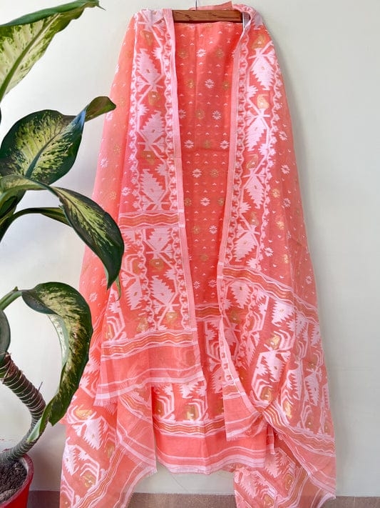 Handloom Unstitched Cotton Suit with Dupatta | Peach