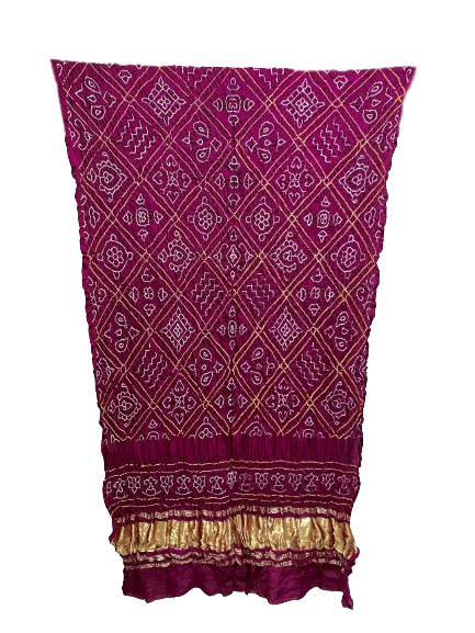 In the lively corners of Gujarat, where the air carries the scent of spices and the streets echo with celebration, the art of Bandhej—more widely known as Bandhani—has thrived for thousands of years. The Magenta Bandhej Dupatta, handcrafted with care and tradition, is not merely a piece of fabric but a thread-bound tale of community, culture, and craftsmanship.