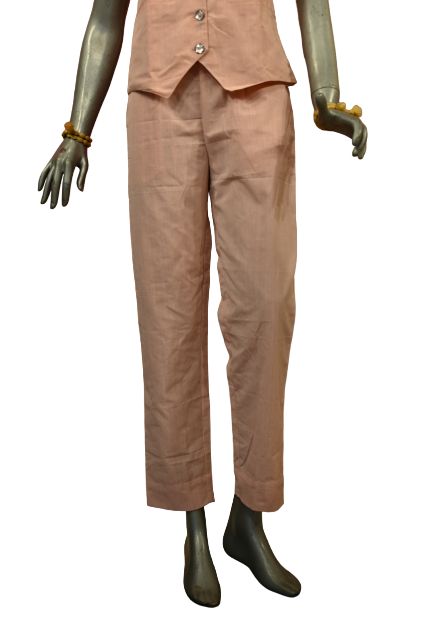 The Peach Co-ord Set stands out for its meticulous craftsmanship and thoughtful design. This two-piece ensemble features pants with a smooth waistband in the front and a soft, elasticated back, ensuring a perfect fit that moves with you. The jacket, with its elegant V-neck and button details, adds a sophisticated touch to your casual wardrobe. Made from the finest quality cotton, the fabric is not only soft against the skin but also resistant to color bleeding and wrinkles. This ensures you stay looking fresh and polished all day long. Whether you’re heading to the office or enjoying a leisurely day out, this Co-ord Set is versatile enough to suit any casual occasion.