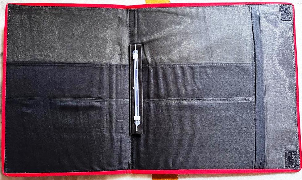 The embroidery will remain vibrant with gentle handling. If required, lightly iron the folder inside out using a cloth barrier to avoid damaging the threads.