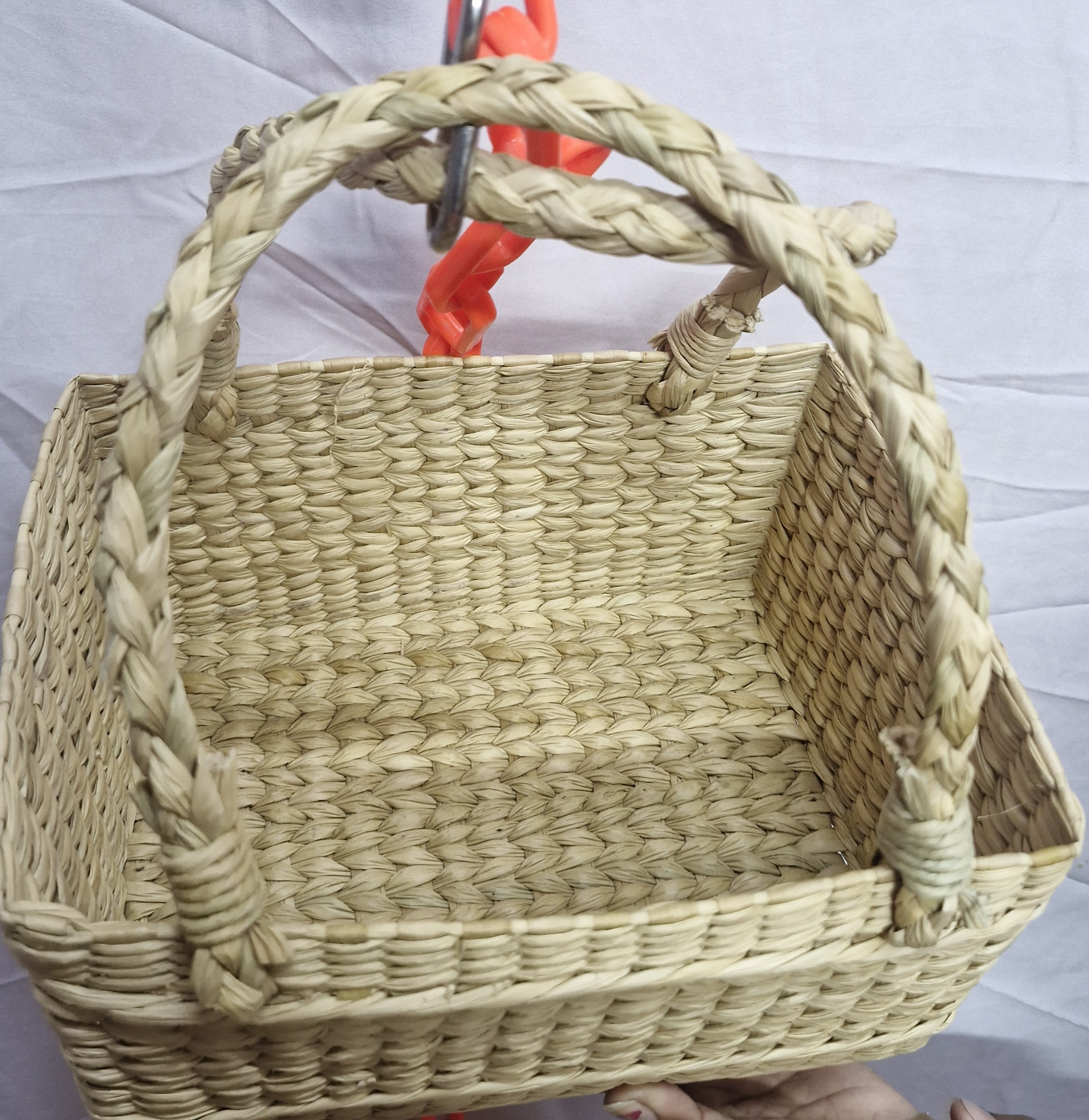 Each kauna bag begins with carefully harvested kauna grass, which is sun-dried to achieve strength and flexibility. Skilled artisans then hand-weave the fibers into a sturdy structure, shaping the base and sides gradually. The bag is finished with khadi fabric detailing, adding softness and reinforcement while maintaining a natural look. The weaving process relies entirely on hand skill, making every bag slightly different in weave pattern and texture.