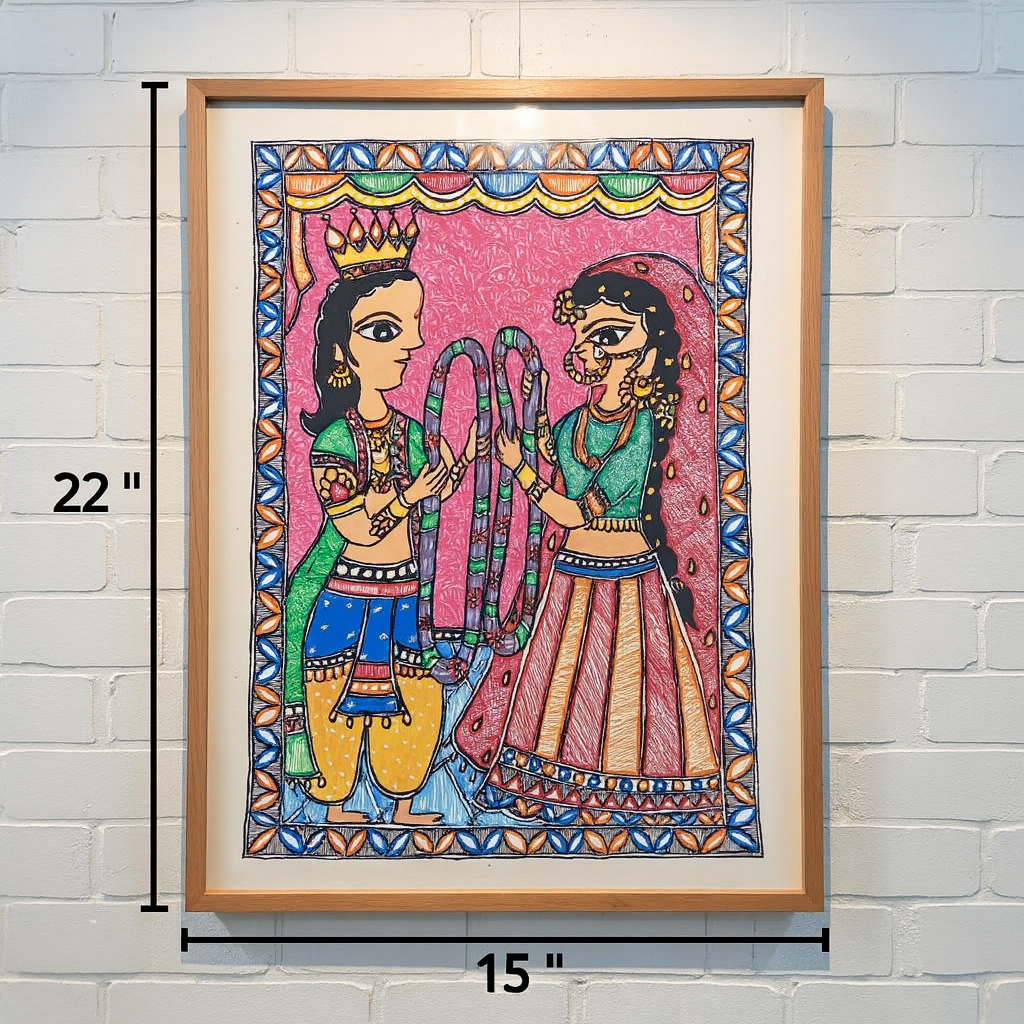 Handmade Madhubani Painting of Radha-Krishna | 22x15 Inches