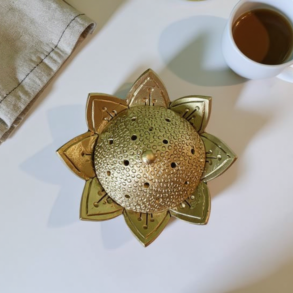 The Flower Shape Metal Incense Stand from Madhya Pradesh combines artistic craftsmanship with functionality. Made from brass metal with a stunning bronze finish, it is perfect for home decor and worship. Easy to care for and beautifully designed, this stand adds a touch of elegance to any space. Explore this exquisite piece at Indiahandmade.