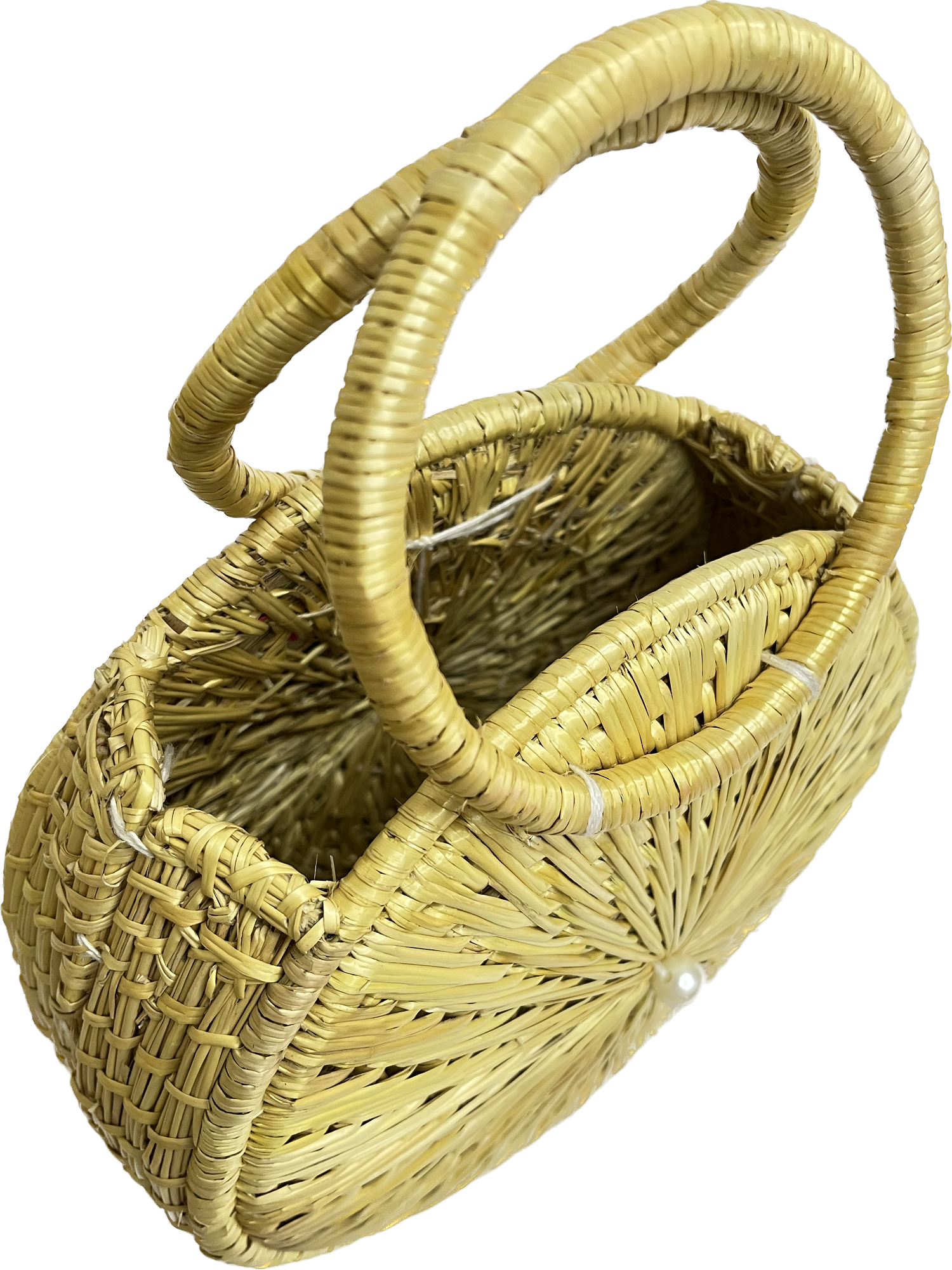 Each Sikki purse is entirely handmade using techniques refined over generations. The process begins with harvesting the grass at the right stage to ensure strength and flexibility. After drying and cleaning, the grass is split into fine strands and coiled carefully. Using a needle-like tool known as a takua, artisans stitch the coils together, gradually shaping the purse and its sturdy top handle. This slow and precise method gives the bag its structure, durability, and distinctive handmade character.