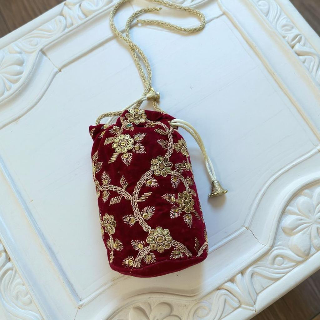 Elevate your bridal ensemble with this exquisite Ladies Wedding Potli Bag. Handcrafted with intricate embroidery, this maroon potli bag exudes timeless elegance and traditional charm. Designed to complement your wedding attire, it perfectly blends heritage artistry with modern aesthetics, making it an essential accessory for any grand celebration.