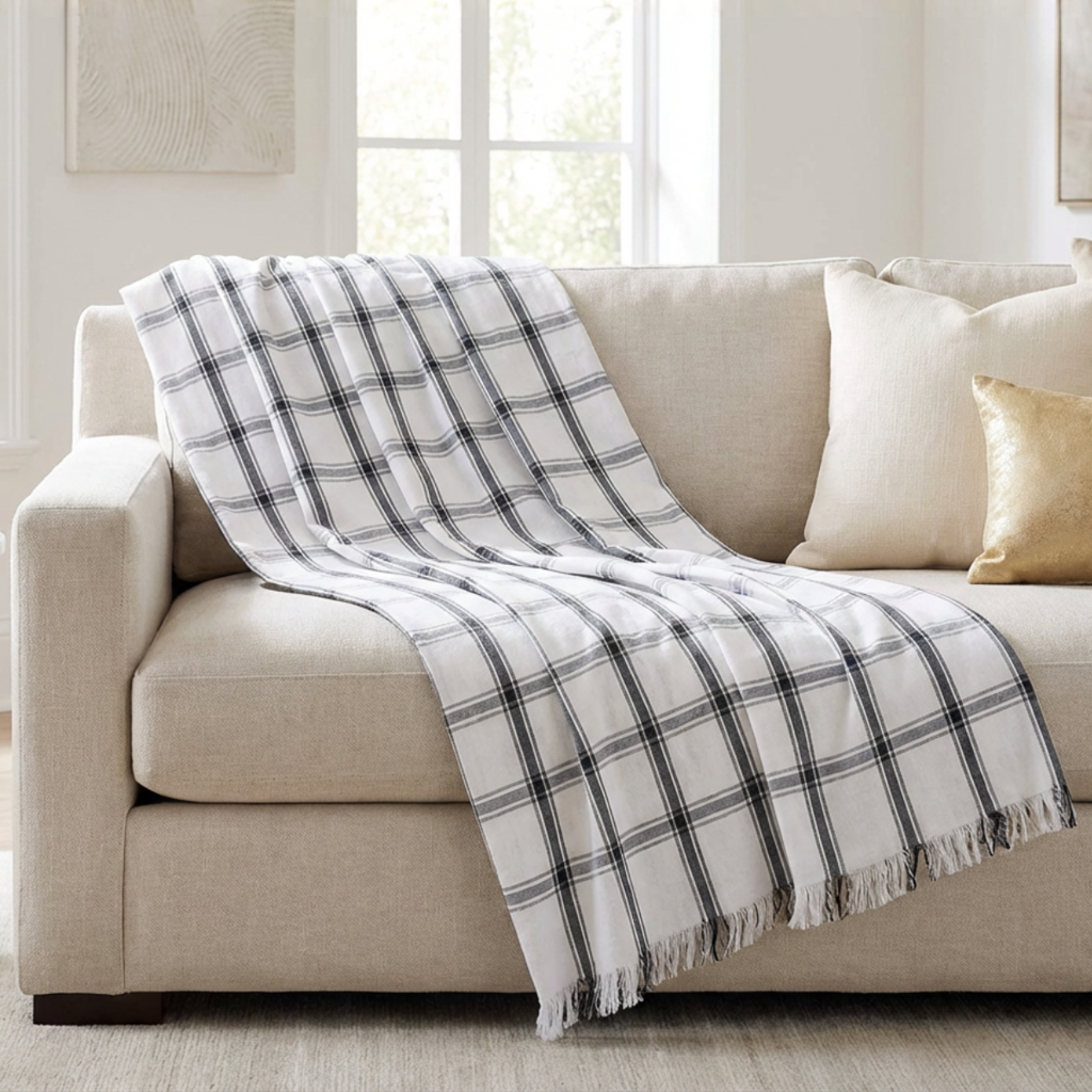 Handwoven Checkered Cotton Sofa Throw