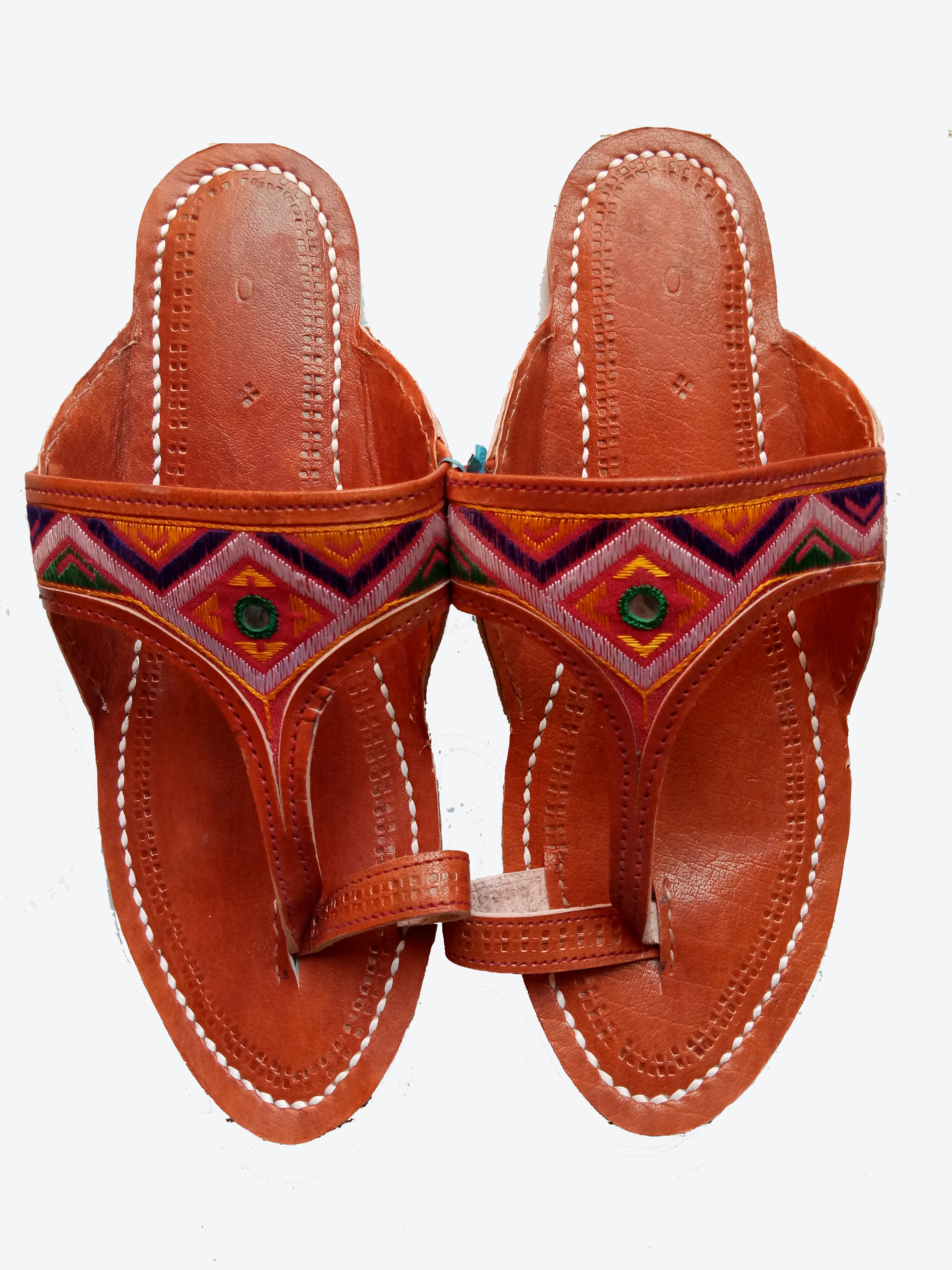 Add a touch of vibrant tradition to your steps with this handcrafted Leather Chappal featuring exquisite Soof embroidery. Straight from the heart of Gujarat, this piece blends age-old artistry with everyday comfort, perfect for those who adore ethnic style.