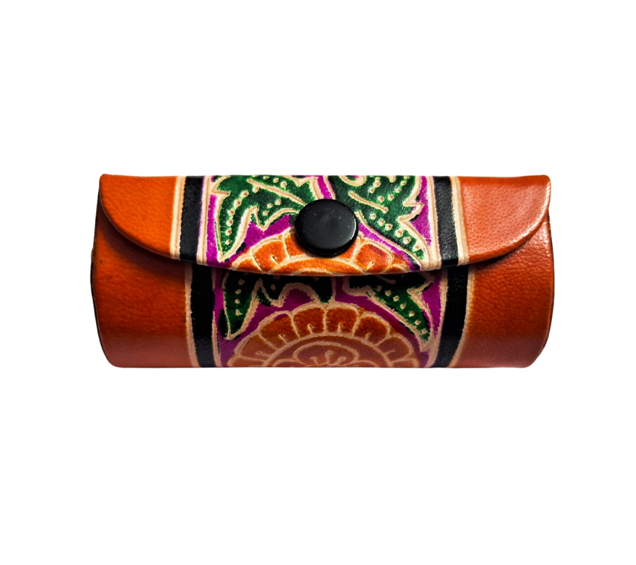 Celebrate the beauty of traditions with this handcrafted leather lipstick case with mirror, a vibrant blend of function and cultural pride. Made by artisans in West Bengal, it brings a sense of joy and heritage to your everyday moments.