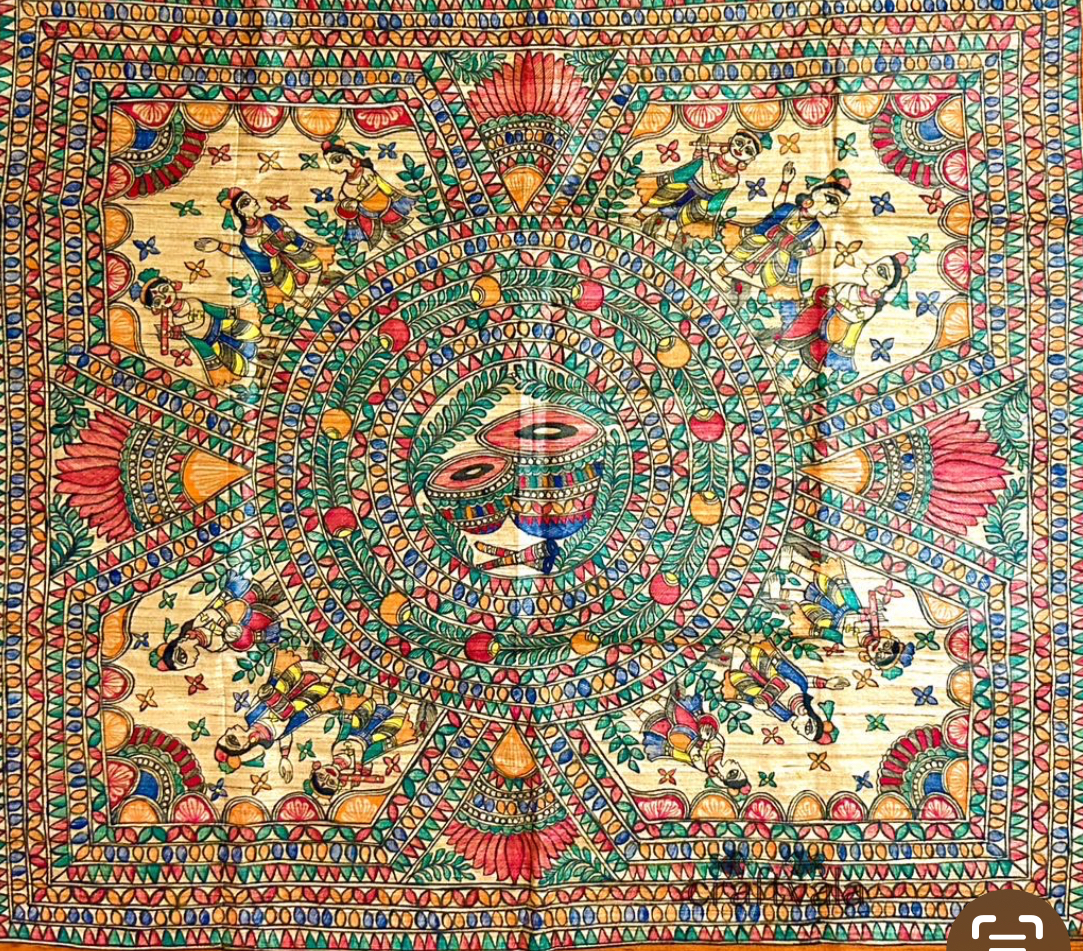 A masterpiece of heritage and craftsmanship, this Madhubani Painted Saree beautifully showcases the age-old artistry of Bihar. Handcrafted on Tussar Ghicha Silk, it blends tradition with elegance, making it an exquisite choice for weddings and festive occasions.