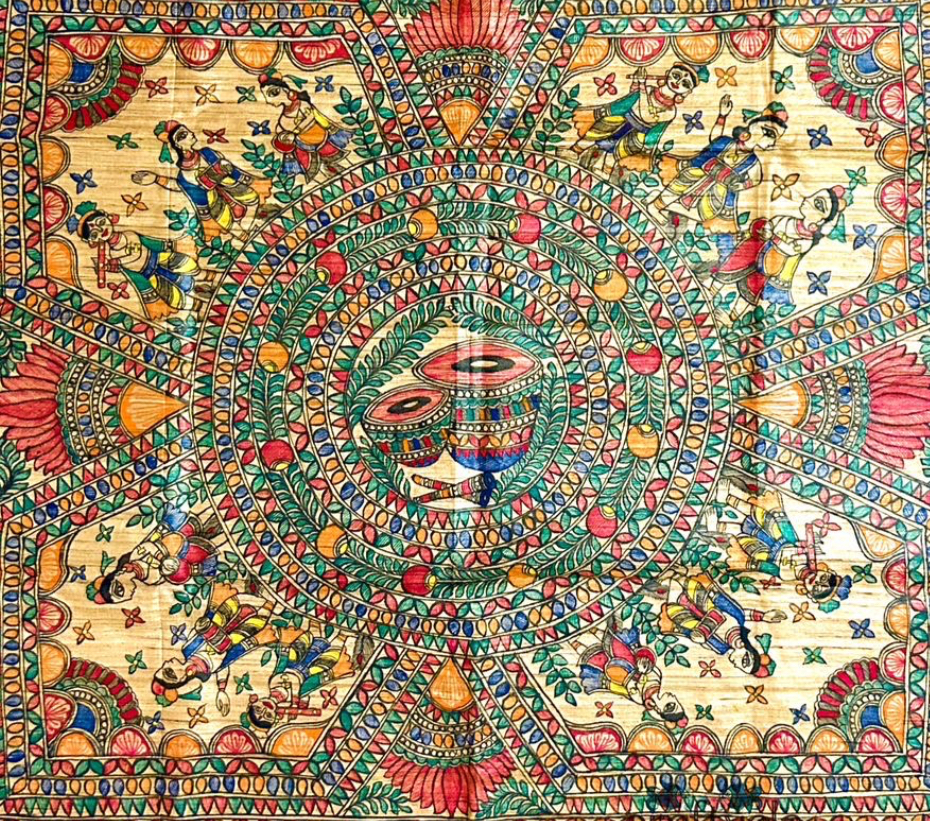 This Madhubani saree is a tribute to India's rich artistic legacy. With its blend of tradition and sophistication, it is an heirloom-worthy addition to any wardrobe.