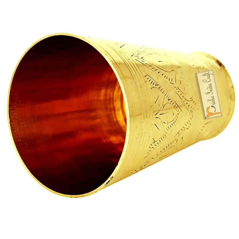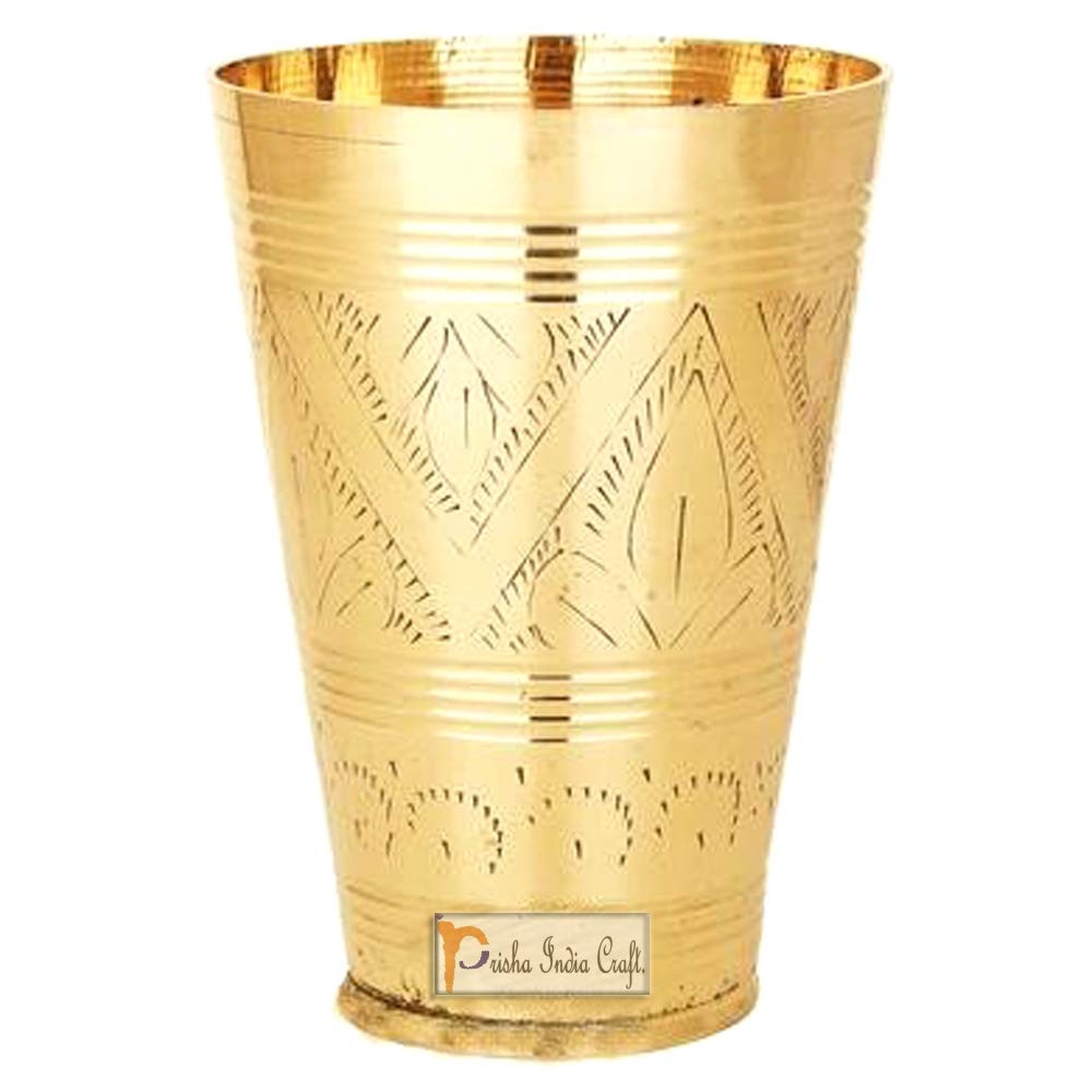 FEATURES Pure Brass Tumbler Embossed Design Glass, Color: Gold, Material: Brass, Weight: Aprox 110 Gram, Height: 4.00" INCH, Width/Diameter: 3.00" INCH, Length: 2.00 INCH, Capacity: 250 ML |