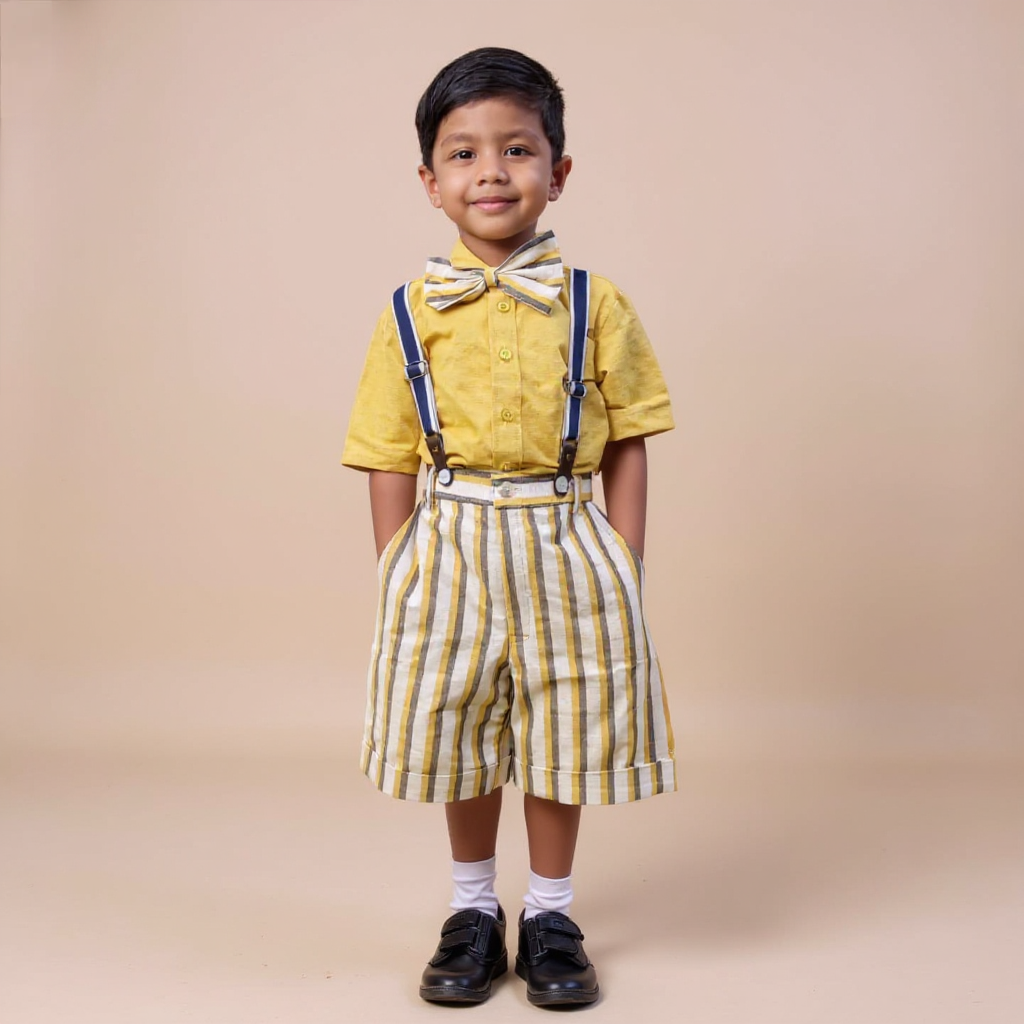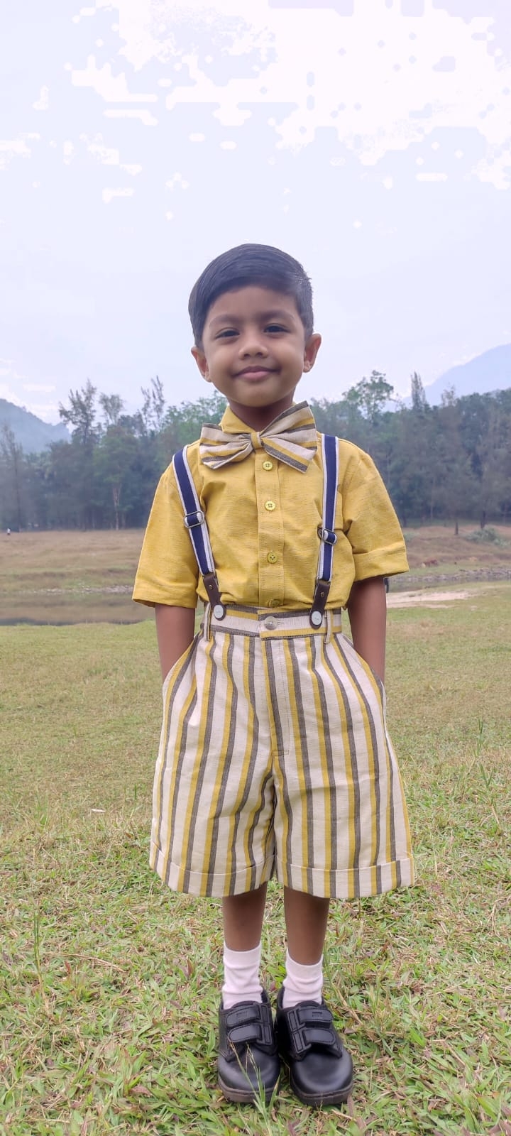 Dress your little champ in the vibrant charm of Kerala's traditional handloom with our cotton dress for boys. This stylish yellow outfit is designed for 3 to 4-year-olds, combining the best of comfort and contemporary fashion trends. Perfect for any casual outing, this dress will make your kid the centre of attention with its bright, cheerful hue and intricate craftsmanship.