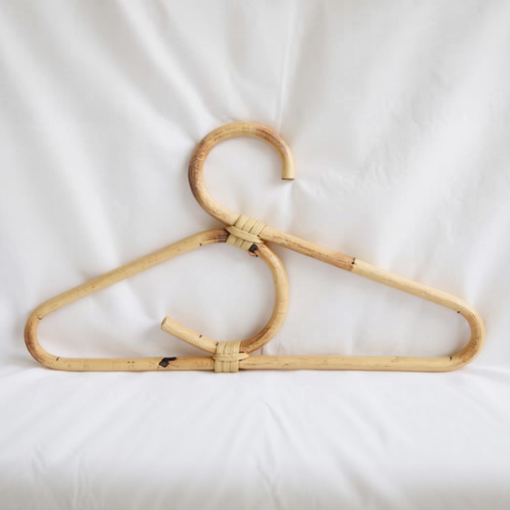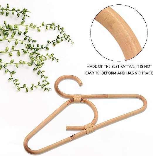 Handcrafted in Uttar Pradesh, the Rattan Clothes Hanger measures 12.2"W x 7.09"H and is made from high-quality cane and bamboo. These durable and stylish hangers are perfect for toddler-sized garments, adding a touch of rustic elegance to any closet.