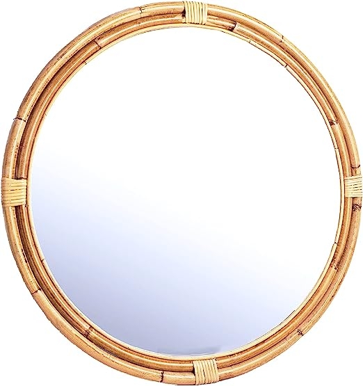 The Rattan Frame Round Mirror features a substantial 16-inch diameter, making it a striking addition to various spaces. The design centres around a handcrafted frame constructed from unpeeled rattan, appealing to those who appreciate natural aesthetics.