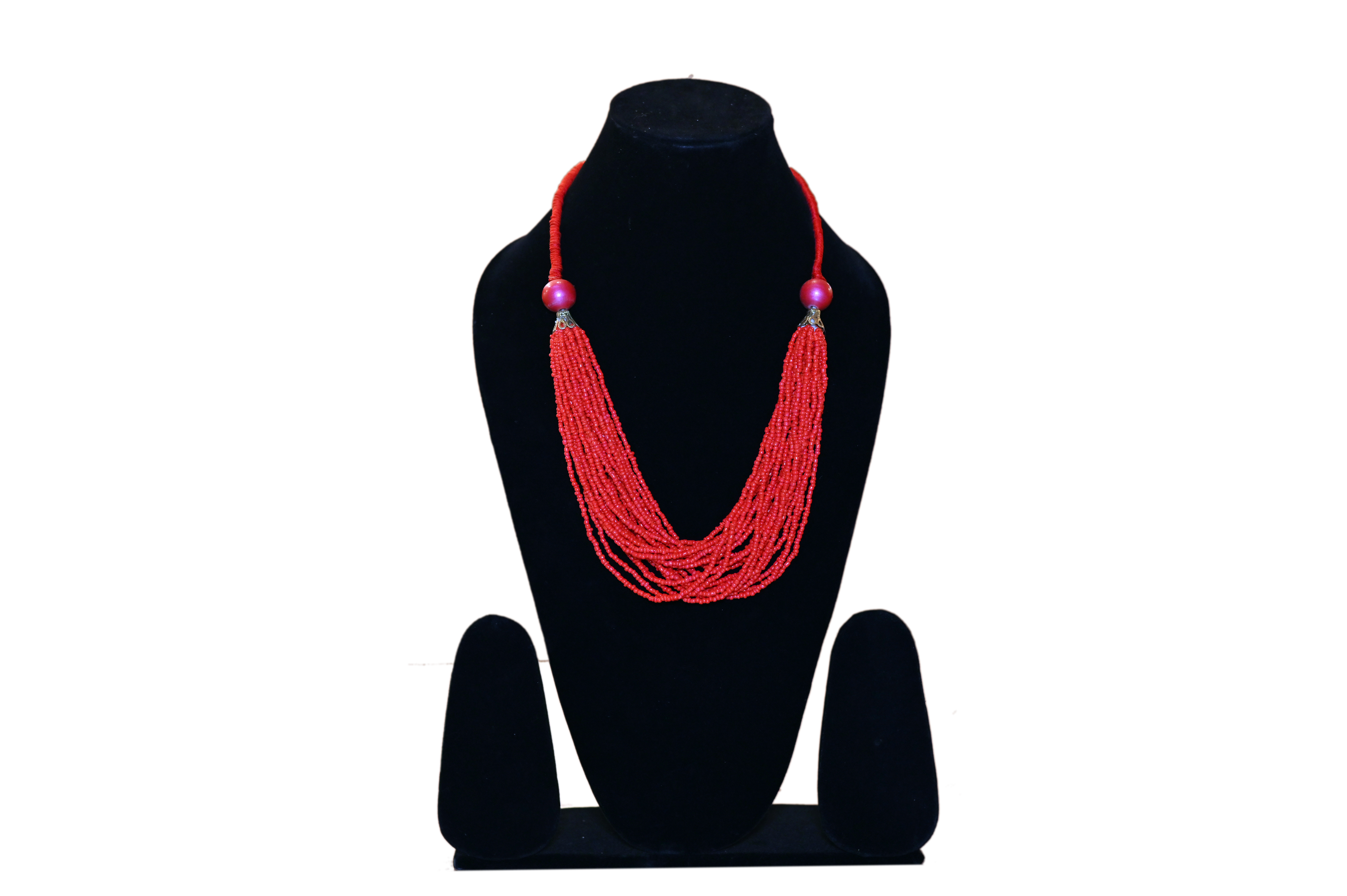 RED COLOR BEADED LAYERED PARDTY WEAR NECKLACE