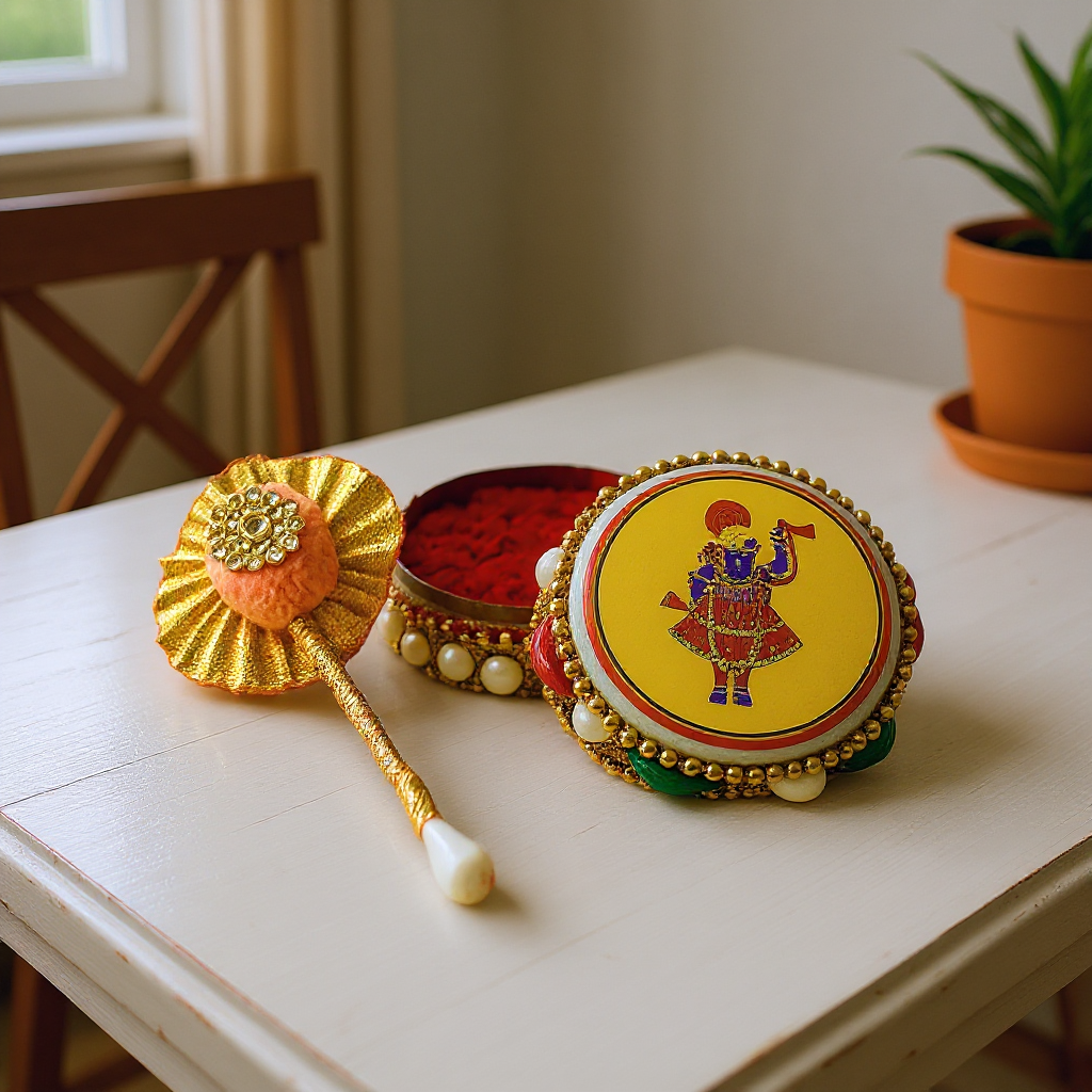 Shri Jagannath Kumkum Dibbi with Sindoor and Stick | 3.81 x 5.08 cm
