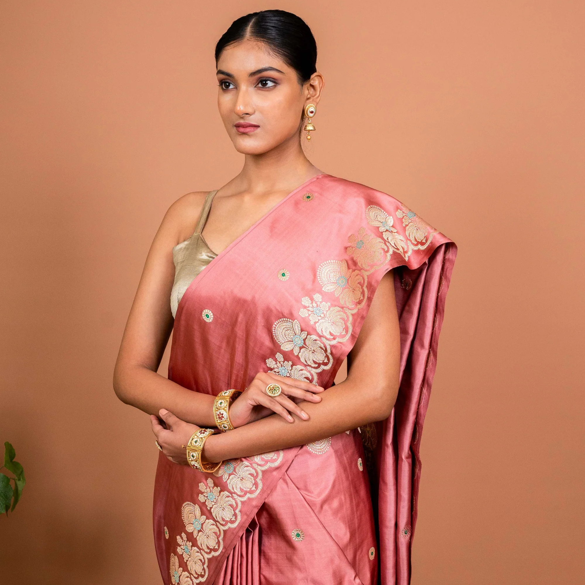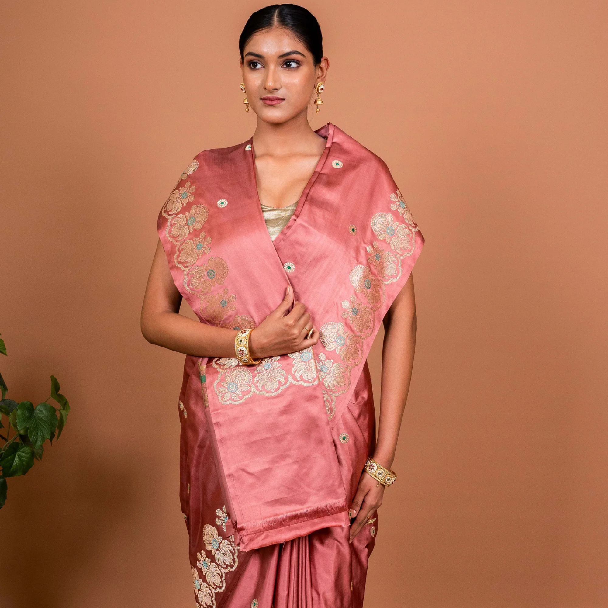 A Celestial Drape: The Sitara Luminous Pink Handwoven Banarasi Silk Saree