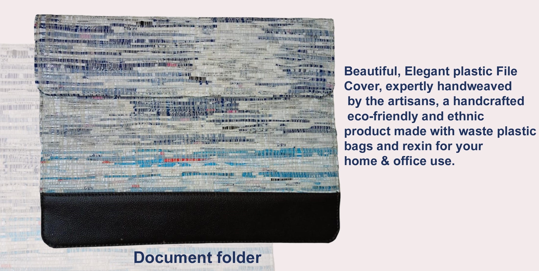Embrace sustainability with our Upcycled Document Folder, a marvel of eco-friendly design and practicality. Crafted in Rajasthan from upcycled plastic and premium rexin, this multi-colored folder not only organizes your documents but also makes a bold statement about your commitment to the environment.