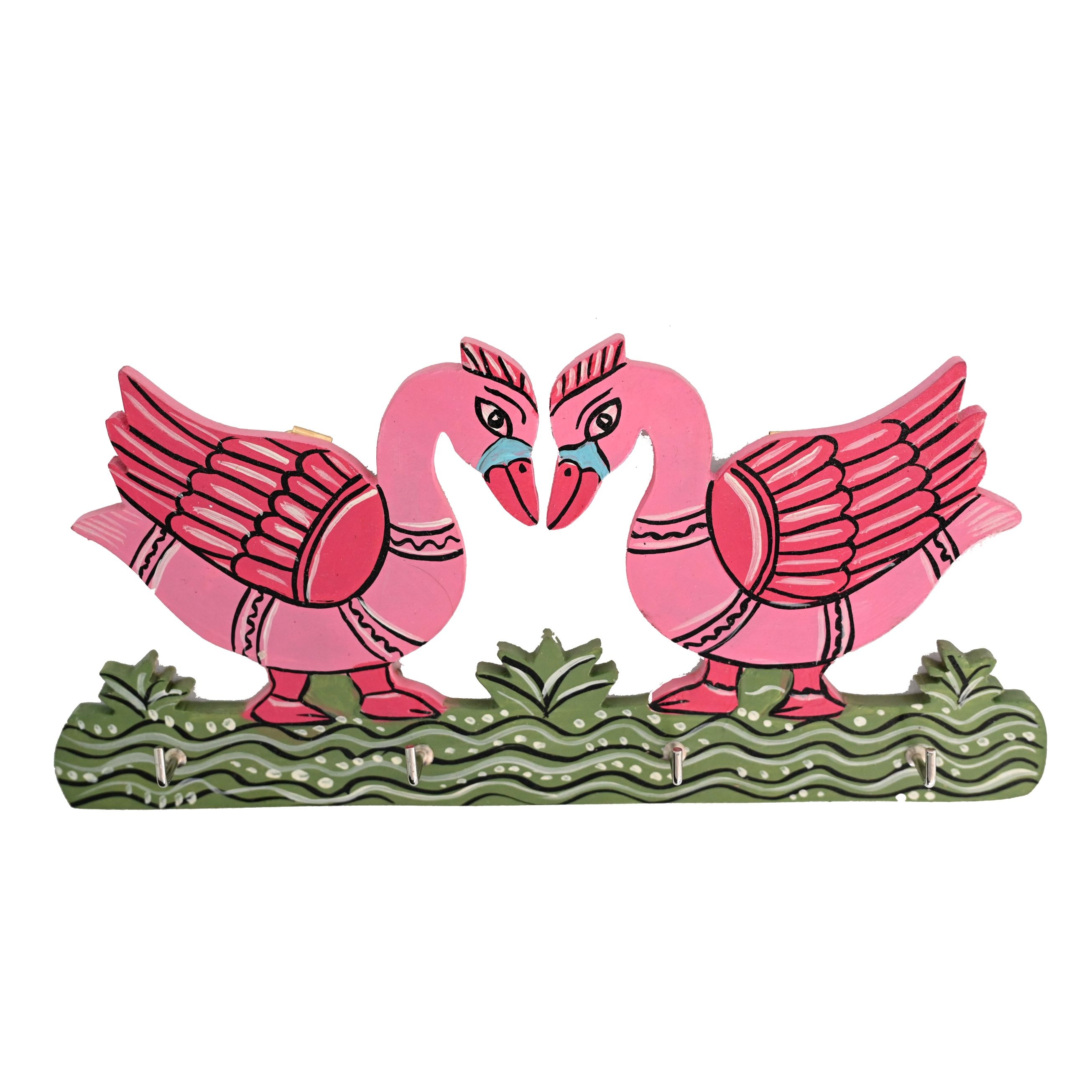 Add a touch of charm and functionality to your home with our Wooden Key Holder. Handcrafted in Bihar, this wall decorative key holder features a unique design of love birds, bringing a whimsical and vintage appeal to any room.