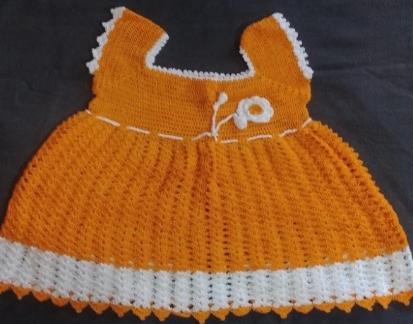 This beautifully woven crochet frock features an open weave design, making it both breathable and stylish. Available in a vibrant orange color, it’s perfect for a variety of occasions. The frock can be embellished with fun patterns and designs, adding an extra flair to its already adorable look. Its lightweight fabric ensures maximum comfort, while the intricate crochet work offers a unique touch to your child's wardrobe.
