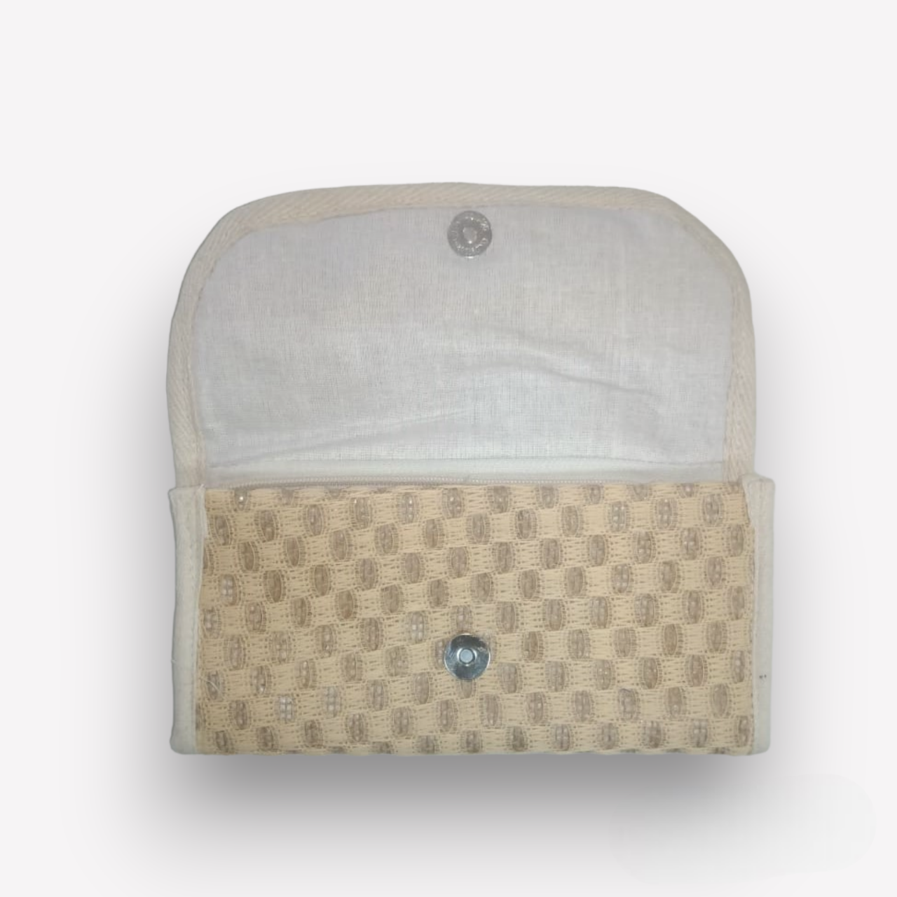 A stylish hand purse for women made of pure Jute & synthetic net which absolutely looks gorgeous, It has cotton laminaton from the inside and two zippered pockets which can be used to keep coins and other micro essentials and one main pocket to keep cards or mobile phone safely. It is highly durable in nature because of the jute fabric, As Jute is super strong in nature it increases the durability of the product. Jute is one of the strongest fibers in the world. This product is totally eco-friendly and long lasting. It is biodegradable and It can be recycled.